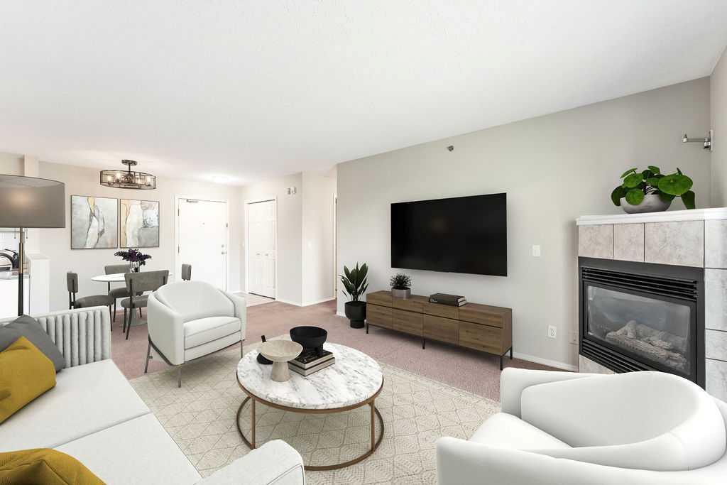 Welcome to this charming 2-bedroom, 2-bathroom condominium nestled in the highly sought-after Chaparral Ridge neighbourhood of Calgary. This home is perfect for first-time buyers or savvy investors, alike. A standout feature is the exceptionally large primary suite, spacious enough to comfortably fit a king-sized bed, and boasts a walk-through closet leading to an updated private ensuite bathroom. The large second bedroom offers ample space for guests, a home office, or additional family members, and is conveniently located near the four-piece main bathroom. Enjoy the comfort of a heat pump that provides both heating and air conditioning, and cozy up to the gas fireplace on chilly evenings. Step outside to your south-facing balcony, complete with a BBQ gas line, perfect for summer grilling. The entire unit has been freshly painted, offering a bright and welcoming ambiance. Additional conveniences include in-suite laundry tucked away in a generously sized storage room, providing extra space for all your essentials; a heated 3x6 storage locker; and a heated, underground, titled parking stall, with the possibility of renting an additional exterior spot. Visitors will also appreciate the ample parking available. Located in the Chaparral Village complex, this pet-friendly building (with board approval, excluding dogs) offers easy access to major routes like Stoney and MacLeod Trails. You'll also find schools, shopping, golf, and scenic walking trails leading to Lafarge Meadows and Fish Creek Park just a stone's throw away. Available for immediate possession. Don't miss out on this fantastic opportunity to call Chaparral Ridge your new home! ***Some photos have been virtually staged to show the potential of the home.***