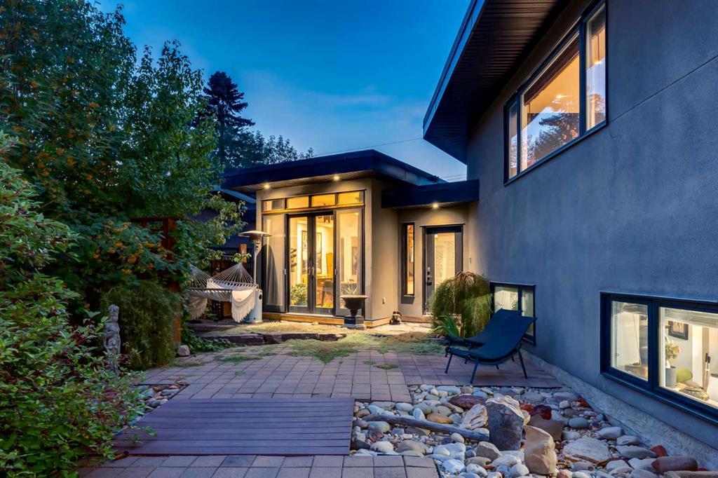 Experience mid-century modern elegance in this exquisite home designed by architect David Yuen, located in the desirable Glamorgan neighborhood. Just steps from Glamorgan School, the outdoor rink, and Grafton Park, this residence boasts over 2,700 square feet of developed space with seamless indoor-outdoor living. The sunken living room features a Danish swiveling Morso wood-burning fireplace, while floor-to-ceiling windows and sliding doors flood the space with natural light. The open floorplan is adorned with Bamboo hardwood flooring and includes a gourmet kitchen with quartz counters, rich wood cabinetry, a six-burner Viking gas range, and a large island. The primary suite is a true oasis with an abundance of natural light and space, a luxurious ensuite with heated floors, double vanity, and a large glass door shower. Enjoy three separate private deck/patio areas, a backyard retreat with a built-in cedar barrel hot tub beneath a charming pergola, and an attached heated double garage. With its superb entertainment spaces and potential in-law suite currently functioning as an in-home salon, this home offers both comfort and versatility, all just a 10-minute drive from downtown.