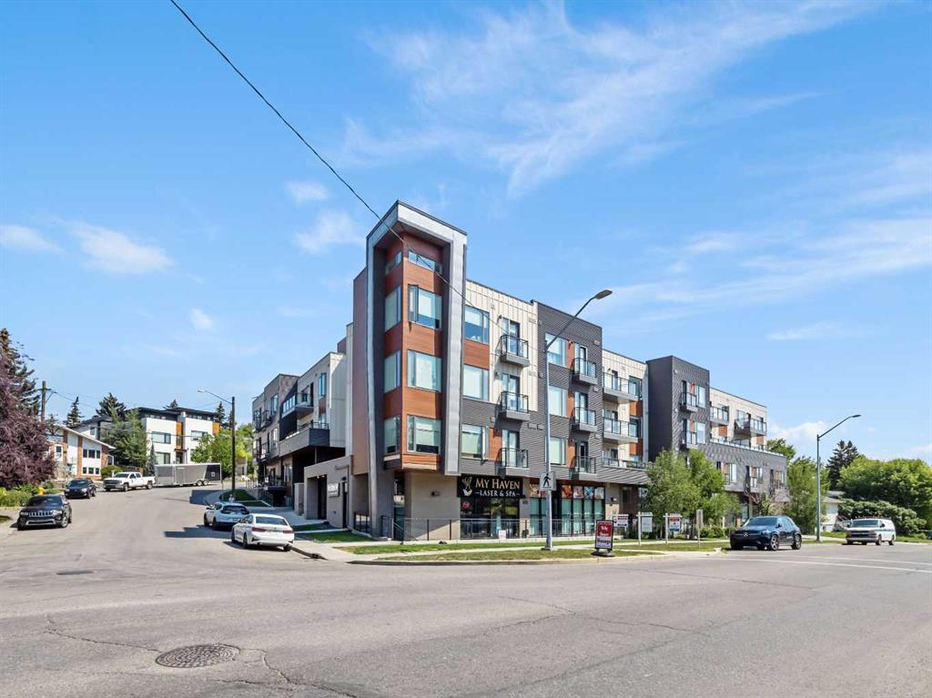 Discover exceptional living in Mission 34, nestled in the heart of the upscale Parkhill/Roxboro/Erlton area. This modern 1 bed, 1.5 bath condo is perfectly positioned within walking distance of Calgary’s premier restaurants, cafes, and specialty shops in the vibrant Mission District and 17th Avenue. With its short-term rental setup and ALL INCLUSIVE FURNISHINGS, this turn-key suite is ready for immediate enjoyment or investment. Enjoy unmatched convenience with TWO LARGE TITLED PARKING SPOTS in a heated underground parkade - an uncommon luxury that enhances both owner comfort and investment potential. This condo's spacious, open layout features high 9-foot ceilings and wide plank laminate flooring, creating a bright and airy atmosphere. The contemporary kitchen is a chef’s dream, showcasing full-height cabinetry, quartz countertops, sleek stainless steel appliances, pendant lighting, and a large island with bar seating. The adjoining living area is ideal for entertaining, bathed in natural light from expansive windows. The master bedroom is a serene retreat with a walk-in closet and a private, elegant 4-piece ensuite bathroom. The unit also includes a versatile day bed for guests, a convenient 2-piece bathroom, and in-suite laundry with additional storage. Mission 34 offers a vibrant lifestyle with a charming courtyard featuring a double-sided outdoor fireplace and lush mature trees—perfect for summer gatherings. Unit #313 presents incredible value as both an investment property and a stylish home. Don’t miss out on this exceptional opportunity. Schedule your private viewing today!