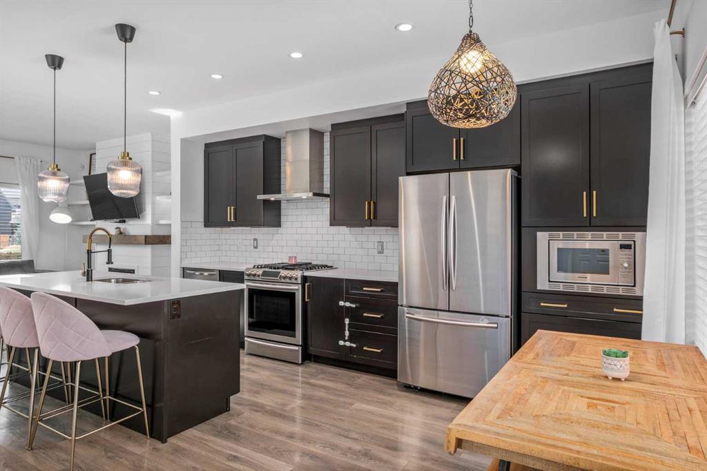 Seize the chance to own in the prestigious 4-season lake community of Mahogany, one of Calgary's most luxurious and sought-after neighborhoods. Known for its vibrant lifestyle and upscale living, Mahogany offers the largest freshwater lake in the city, where residents can indulge in year-round recreational activities. This semi-detached side-by-side home is perfectly situated within walking distance (5 minute walk) to the Main Beach Club, the tranquil wetlands, and just steps away from two playgrounds! You'll be impressed by the home's desirable floor plan, featuring an open-concept design with OVER 1700 SQFT of LIVNG SPACE, with 9’ ceilings, laminate floors throughout, and oversized windows that flood the space with natural light and Yes, it does have AIR CONDITIONING for those hot days! The cozy front living room, enhanced by a custom electric fireplace, seamlessly flows into the chef-inspired kitchen, which boasts quartz countertops, a subway tile backsplash, full-height cabinetry with an extended pantry, and a large island. Additional upgrades include pot lights, a stainless steel appliance package complete with a gas range and hood fan, garburator, and a waterline to the fridge. The main floor, finished off with a convenient half bath, is a fantastic open space for family gatherings and entertaining. Upstairs the home features a dual master layout with two generously sized bedrooms, each complete with its own walk-in closet and en-suite bathroom. The basement is tastefully finished, offering a laundry, a third full bathroom, a spacious recreation area with a built-in desk, and a third bedroom. Outside, you'll find your own private oasis; the fully landscaped lot includes a large deck for entertaining, a lower-level patio with a pergola perfect for summer fires or a future hot tub, and plenty of space for an oversized double detached garage! Don't miss out—schedule your showing today!