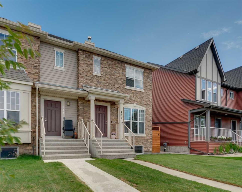 Modern and beautifully designed home with a convenient dual master floor plan, a private low-maintenance backyard and an ideal location across the street from a playground and green space. Within walking distance to Sibylla Kiddle School. A neutral paint pallet adorns the main floor which is bathed in natural light illuminating the wide plank floors and new carpet throughout. A gas fireplace with side built-in invites relaxation while clear sightlines encourage unobstructed conversations. Culinary adventures are inspired in the beautiful yet functional kitchen featuring quartz countertops, steel appliances, a plethora of rich cabinets, a pantry for extra storage and a large centre island to casually gather. This home also has central vac. Host larger gatherings in the adjacent dining room with patio sliders to the extremely private backyard. Conveniently a separate side entrance leads to a privately tucked away powder room and closet to hide away jackets and shoes. A wonderful flex space on the upper level separates the bedrooms for ultimate privacy while also providing a wonderful workspace with a built-in office system. Dual primary bedrooms are both generously sized with large walk-in closets and their own 4-piece ensuite, no more sharing! Enjoy peaceful morning coffees, lively summer barbeques and time spent unwinding on the large patio in your privately fenced backyard. Low-maintenance landscaping means less work for you and more time enjoying this beautiful outdoor space. Phenomenally located with close proximity to the many river pathways that wind around Fish Creek Park and that this very active community boasts a private clubhouse with sports courts, spray park, skating rink and more. Mere minutes from additional restaurant and shopping options in neighbouring Seton as well as the world’s largest YMCA. Truly an outstanding location for this movie-in ready, exceedingly stylish home.