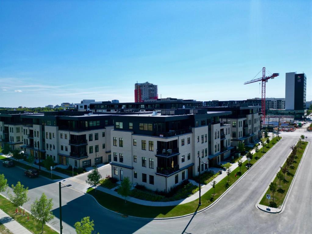 Welcome to this stunning, penthouse unit with panoramic views of the mountains and COP, boasting over 1900 sqft of living space with an awe-inspiring blend of luxury and functionality. As you step inside, you're greeted by an expansive open-concept floor plan that seamlessly integrates the living spaces, creating an inviting atmosphere for both relaxation and entertainment. The 10-foot ceilings and extensive floor-to-ceiling windows add to the grandeur of the space, giving it an open and airy feel. The heart of the home, the kitchen, is a chef's dream. An expansive island takes center stage, providing ample workspace for culinary endeavors and serving as a gathering spot for family and friends. Adorned with sleek quartz countertops, stainless steel appliances, and a stylish tile backsplash, the kitchen is as beautiful as it is functional. Adjacent to the kitchen is the eating nook, which seamlessly flows into the living room, creating an expansive area for dining and entertaining. There's room for a massive dining table, perfect for hosting gatherings and creating lasting memories with loved ones. The living room is a serene retreat, boasting large windows that frame the panoramic views and provide access to a massive deck, where you can soak in the beauty of the outdoors while enjoying a morning cup of coffee or unwinding with a glass of wine in the evening. Retreat to the primary bedroom, where luxury awaits. His and her walk-in closets with custom built-ins offer plenty of storage space, while the 5-piece ensuite is a spa-like oasis featuring a dual vanity, stand-alone shower, soaking tub, and a private water closet. For guests or family members, there's a secondary bedroom with a spacious 3-piece bathroom, complete with a stand-alone shower. Laundry day is a breeze in the well-appointed laundry room, which offers plenty of space and convenient access to the mudroom, where custom built-ins and shoe shelving units keep everything organized and clutter-free. Need some extra space to unwind or entertain? Head to the family room, a versatile secondary living space that's perfect for watching sports, working from home, or even setting up a home gym. With a private sitting area and ample room for whatever activities you have in mind, this room offers endless possibilities for relaxation and recreation. This home truly embodies the best of both worlds - luxurious living spaces designed for comfort and style, paired with breathtaking views that serve as a constant reminder of the beauty of nature just beyond your doorstep. Complete with a private, heated double car garage with room for additional storage space! Additional building features include a courtyard & fitness centre. Walking distance to restaurants, shopping and all amenities. Steps away from Market Mall and a quick drive to downtown or escape to the mountains. This home is perfectly located in the heart of the University District!