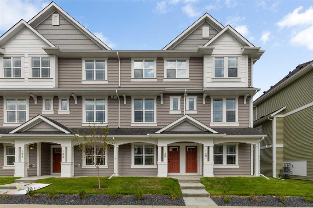 PRICE IMPROVEMENT! BRAND-NEW 3 BEDROOM 2.5 BATH UNIT | TANDEM GARAGE | WALKING DISTANCE TO SCHOOLS, PARKS, AMENITIES and WALKING PATHS! Why build and wait months when you can move into your brand-new home right away. Featuring over 1400 sq ft of developed living space, this trendy unit boasts a modern design with well-defined spaces perfect for the growing family. Enter through the lower-level front entrance into the surprisingly spacious foyer or through the rear man door into the oversized 33’4’ x 12’6” tandem garage which also hosts the utility room and spaces for storage. Up the stairs to the open concept main level shared by the kitchen, dining room and living room. All taking advantage of the sunny SE front windows. Bright & functional kitchen features stainless steel appliance package, generous quartz counter space, plenty of modern cabinetry & a spacious center island. Relax or host your friends and family on the adjacent 14’ x 8’ duradeck balcony with BBQ gas line (upgrade). A massive living room, dining room space and a nicely tucked away 2-piece bath complete the level. Oh, almost forgot to mention the den space near the kitchen which is perfect for a small desk home office. The well-designed upper level includes a convenient laundry closet in the hall and offers a large primary bedroom with ensuite bathroom on one end and two good sized secondary bedrooms on the other which share a 4 piece main bath. The generous primary bedroom features a private ensuite with double quartz vanity, a spacious walk-in closet and an oversized walk-in shower stall. The list of upgrades and additional features includes 9’ ceilings on the main level, luxury vinyl plank flooring (main floor and lower entrance), upgraded feature dining room light fixture, custom window blinds, upgraded washer/dryer, and tile flooring in ensuite and main bath. Fully drywalled and insulated garage, visitor parking nearby, on-site playground and much more. Close to Wildflower Pond pathways, Copperfield school (K-5), Catholic School (K-9), and a quick drive to all amenities. With low condo fees, this townhome has exactly what you're looking for!