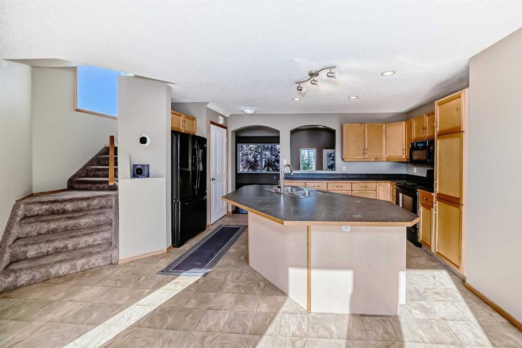 This is a WONDERFUL FAMILY HOME in the sought after community of Coventry Hills. Big windows and newly painted walls make this whole house nice and bright. Walk in to a very practical main floor lay-out. Start with a good sized foyer, up 2 stairs to a large living room - gleaming hardwood floors - and opening up to your perfect functioning kitchen, complete with a large island, all the appliances, and open to a dining area. Right off the kitchen is a big deck ready for bar-b-que dinners, coffee in the morning, cocktails in the evening or just relaxing watching the kids play in the back yard. A 2-piece bathroom for your convenience finishes up the main floor. Upstairs you have your primary bedroom c/w walk-in closet and shared 4-piece ensuite bathroom with 2nd and 3rd good sized bedrooms for a complete family plan. The basement is wide open for your desired finishing, but check out the windows - all regulation size for proper egress. Washer and dryer are included, but the washer needs some repairs. Parking is not a problem with this property - oversized single garage plus RV parking and big storage area that could easily be made into more parking. This well treed lot is bordering alleys at the back and the side, so there is only 1 next door neighbor. You are close to all schools, lots of shopping, parks, movie theaters, walking trails and within a few minutes from Deerfoot and Stoney Trails, making it fast to anywhere in town and quick to get out of town. All this for under $570,000.