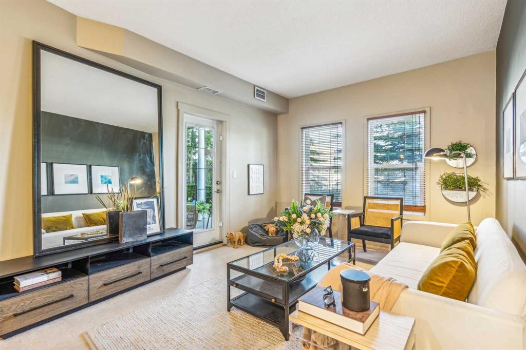 The Gateway South Centre is beautifully designed CONCRETE building, both the ceiling and walls are poured concrete which maximizes privacy and safety. This 1-bedroom + den condo offers a unique blend of style and convenience. Situated on the garden level, this gives you the flexibility to walk out onto the grass and provides access to serene walking paths just steps from your door and Fish Creek Park at the end of the street. The modern kitchen is a chef's dream, boasting stainless steel appliances, granite countertops, a sleek black subway tile backsplash and a spacious pantry. This home is an open concept plan with no wasted hallway space and with soaring 9-foot ceilings it feels even larger than the 592 square feet. A large covered patio offers additional space to entertain or relax and there's a natural gas stub for those who love to BBQ. The primary bedroom offers a large closet with customized storage solutions. The Gateway South Centre offers exceptional amenities, including a fully equipped fitness centre with a yoga studio, two inviting owner's lounges, two guest suites, and the convenience of underground parking for both owners and visitors. Location is unbeatable, with quick access to major roadways, Southcentre Mall, and excellent public transit options, including a bus stop right outside and Canyon Meadows C-Train station nearby. For nature lovers, Fish Creek Park is just down the street, offering endless outdoor activities.Best of all, condo fees cover all utilities—even electricity—ensuring a hassle-free lifestyle in this desirable community; this condo is built with Geo-Exchange Heating and Cooling along with solar panels on the roof - so this home stays cool with A/C! Heated underground parking stall has a caged locker at the end. Pet policy: one dog or one cat (not both) with board approval. Don't miss out on this incredible opportunity—schedule a private showing today and experience the perfect blend of modern living, unbeatable amenities, and a prime location. Make this stunning condo your new home! Pet policy: 1-dog or 1-cat (not both) with a max weight of 23 kilos.