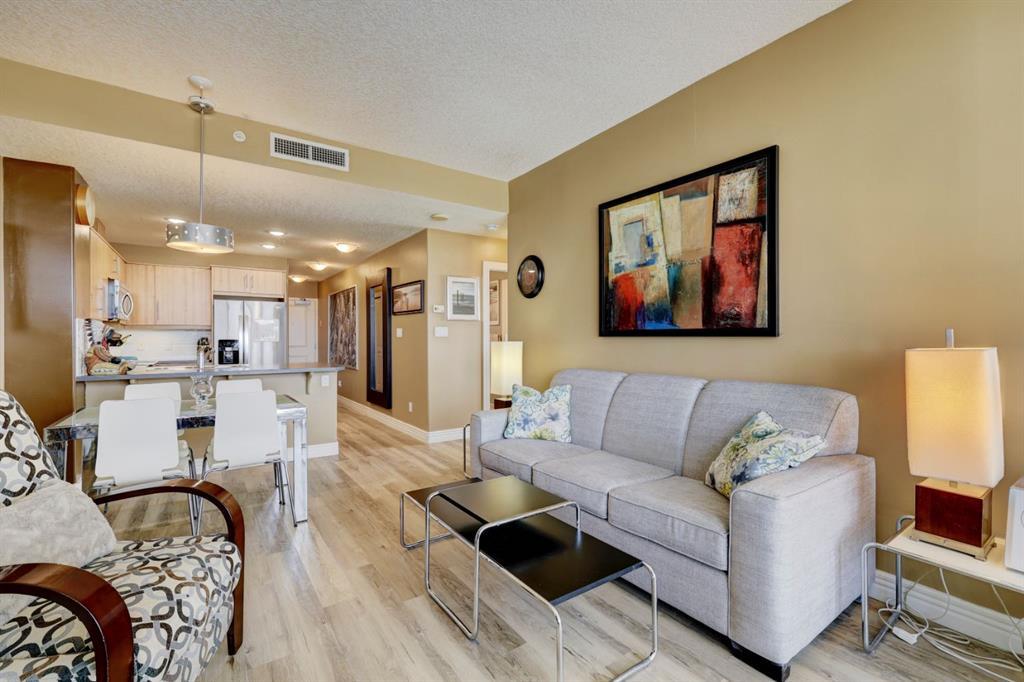 The air-conditioned space is perfect for year-round comfort, featuring a private balcony where you can enjoy your morning coffee or evening relaxation. A charming fireplace adds a cozy touch, ideal for those cooler Calgary evenings.