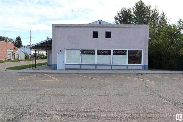 Commercial Building located on Main Street Thorsby. Combination of retail space, work shop, offices, storage, and two washrooms. 3504 sq/ft of heated space perfect for starting your own business or expanding your business to Thorsby. Also has a 666.33 sq/ft addition attached along side not included in the measurements, with an overhead door joining it to the shop space. The shop space also has a 18' wide by 11' tall overhead door at the back and well as more warm and cold storage. Lots of upgrades and updates including a metal roof. All situated on a Corner Lot on Main Street.