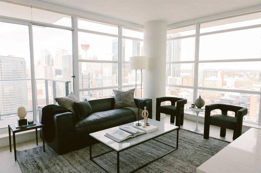 Welcome to the Guardian South Tower, where city living meets luxury. Beautiful PANORAMIC CITY VIEWS from this rare and highly sought after west-facing corner two bedroom, two bathroom nearest to Calgary's Stampede park with new development underway, in THE GUARDIAN SOUTH tower. This NW corner unit boasts floor to ceiling windows showcasing one of Calgary’s most magnificent views amplified by stepping out onto the huge balcony. Highly efficient floor plan has less wasted hallway space and more functional living space. The fully equipped kitchen features a top-of-the-line European appliance package, gleaming quartz counters, and ample cabinet space, making it easy to whip up delicious meals for your guests. The primary bedroom boasts a large closet and a 4-piece ensuite bathroom. Second spacious bedroom, another 3-piece bath, and in-suite laundry complete this unit. This amazing condo also comes with a TITLED TANDEM underground parking stall, providing convenient and secure parking, while 24-hour security ensures your safety and peace of mind. Outstanding amenities include a gym and yoga studio, workshop on the 6th floor, social club, garden terrace on the 7th floor, and concierge service - everything you need for a comfortable and luxurious lifestyle. Plus, you'll be close to trendy restaurants, shopping and so much more. Don't miss out on an amazing opportunity to live in the heart of the city in style and comfort.