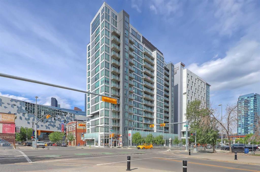 *VISIT MULTIMEDIA LINK FOR FULL DETAILS & FLOORPLANS!* LARGEST 2BED/2BATH UNIT IN THE BUILDING in EAST VILLAGE with FURNITURE INCLUDED! It could even be argued as an END UNIT due to the South wall only being shared by about 5 feet with the most Southern units! One of Calgary's Highest WALK, TRANSIT and BIKE Scores in Calgary. This 2-bed, 2-bath unit resides in the heart of Downtown's East Village’s most successful zero parking building, located in a convenient area steps to the FREE FARE ZONE C-Train! Take the train for free throughout downtown! Next to the Central Library, Hilton Hotel & National Music Centre and a short 5-min walk to the river. Imagine walking and cycling to your favourite hot spots & shopping, such as Sidewalk Citizen Bakery, Parlour Ice Cream, Charbar, Superstore – oh, and the EV Dog Park and RiverWalk, too! Located almost across the street from the Downtown Commercial Core, whether you commute for work or enjoy exploring the city, all your go-to places have never been more accessible. There is no need to find parking within walking distance to The Calgary Stampede and The Saddledome for Flames Games and Concerts, not to mention the New Scotia Place Flames Arena! This East-facing unit has unobstructed open-air views, including sophisticated bike storage with a ramp for easy access. Floor-to-ceiling windows create a very bright space, the building is well-managed, so you don't have to worry about maintenance, and it's an overall perfect home in a superb location for young professionals, students, and couples and is a recession-resistant dream being in the ultimate location. Discover a private balcony for views, fresh air, and all your desired primary living spaces. The kitchen has all the essentials, including cabinet storage, quartz countertops, and stainless steel appliances. The dining space and living room are open-concept and offer ample space for everything you might need to unwind and work from home. The larger primary bedroom is a perfect size with a wardrobe. It has easy access to the main 3pc bath with LVP flooring and one of the VERY FEW UNITS that has a FULL WALK-IN SHOWER and UPGRADED SHOWER PLUMBING FIXTURES WITH DETACHABLE SHOWER HEAD WAND. The secondary bedroom is also a fantastic home office or roommate space. This prime location in East Village is Rental-friendly and encourages an eco-friendly lifestyle with easy walking and cycling access to all the surrounding areas. Olympic Plaza's winter ice skating and the arts are a 7-minute walk away, Calgary Tower is a 10-minute walk, and New BMO Centre and Saddledome are also a 10-minute walk! Hop on your bike, and many of your favourite places are within a 10-minute bike ride – such as CORE Shopping Centre, Eau Claire, Inglewood and more. With direct access to Macleod Trail, 9th Ave, and 4th Ave, commuting to anywhere in inner-city Calgary is convenient! You are going to love life in East Village! There's always an e-scooter waiting for you!