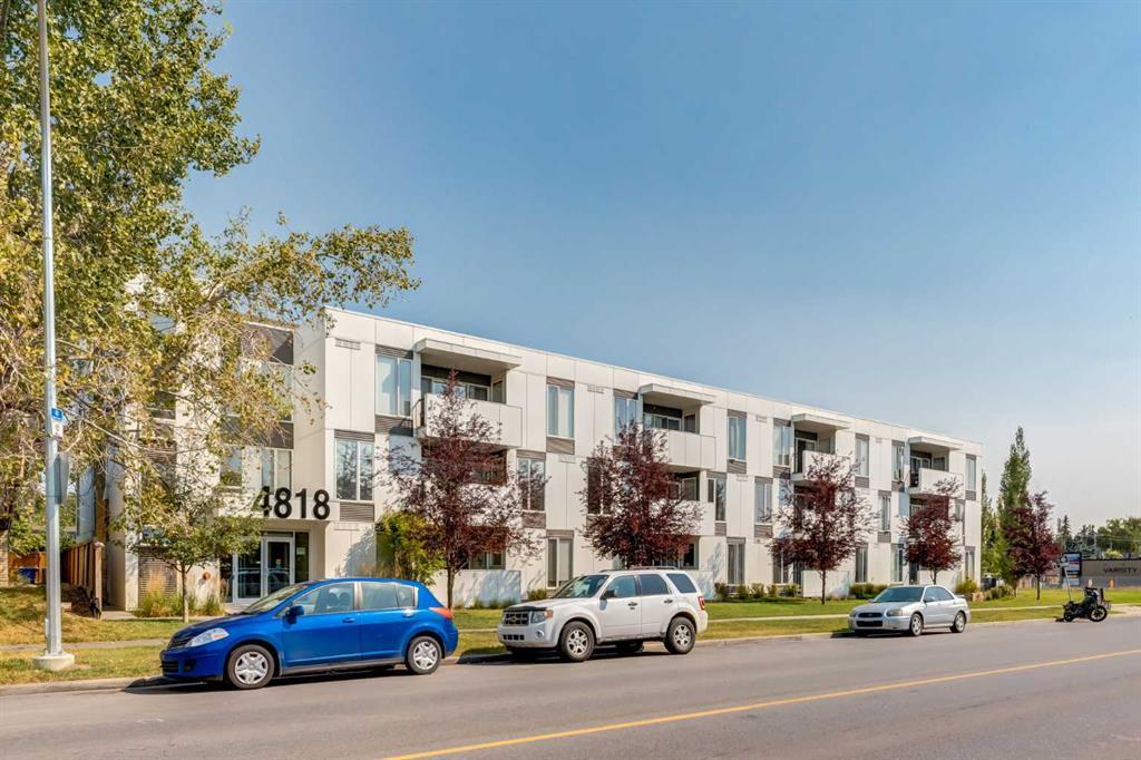 Welcome to Varsity 4818! This modern condo is located in the heart of Varsity, with fantastic access to all of your schools, shopping, restaurants and public transit needs! This unit has 9' ceilings, modern finishings including NEW vinyl plank flooring, a white kitchen with island and stone counters and 2 bedrooms both with ensuites and walk-in closets! The kitchen is open to the living room making this an ideal layout for entertaining! Full size laundry plus storage too! The unit has a large South balcony, plus assigned underground parking and an assigned storage unit too! Walk to market mall, close to U of C, Children's hospital, and University District shopping!