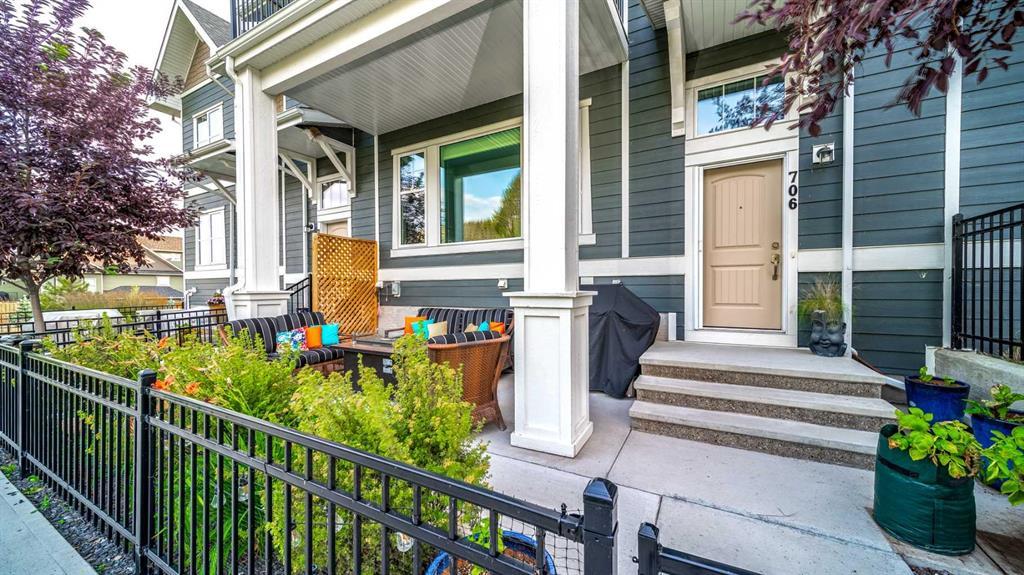 $20K PRICE IMPROVEMENT! Nestled in THE RETREAT in CRANSTON'S AWARD WINNING RIVERSTONE COMMUNITY fronting onto THE ESCARPMENT with UNOBSTRUCED VIEWS you will find this amazing MAIN FLOOR TWO BEDROOM + TWO BATH BUNGALOW. A sprawling gated patio that looks to the green space is a major bonus on this main floor home delivering a tranquil outdoor living space. The spacious front foyer leads up two steps to the bright open floor plan. Flooded with natural light the Great Room features a beautiful fireplace flanked by moveable bookshelves to display your library or mementos. Laminate flooring creates a seamless transition to the kitchen and dining area. Walnut stained maple cabinetry is offset with gleaming quartz countertops and a sleek subway tiled backsplash. The stainless appliance package includes a built in dishwasher, built in microwave and a gas stove and water/ice fridge. There are pot and pan drawers and a good sized pantry for your culinary pieces. Dining can be informal at the island or at the table in the dining area. A large venting window gathers the gorgeous afternoon sun. The primary bedroom is complete with a three piece ensuite (lovely walk in shower) and a walk in closet with built ins to maximize your clothing storage options. A second bedroom is located adjacent to the main four piece bath. Laundry is located next to the main bath and also offers additional storage. Options to add to your finished living space are found in the lower level; currently used as storage but would make a perfect exercise room. An ATTACHED OVERSIZED GARAGE fits that 3/4 ton truck plus another vehicle. Enjoy the amenities of this community perched alongside the Bow River in SE Calgary with its picturesque landscape. Century Hall, (can be booked for events), a skating rink & toboggan hill in winter, splash park, tennis and basketball courts for summer fun, and playgrounds and walking paths for year round enjoyment Major roadways create easy access to the city and beyond. Next door in Seton you will find the South Health Campus , Movie Theatre and a wealth of eateries and businesses within a five minute drive. You will see why so many people are calling Cranston Riverstone their new home. Call your favorite realtor today to view this amazing main floor bungalow.