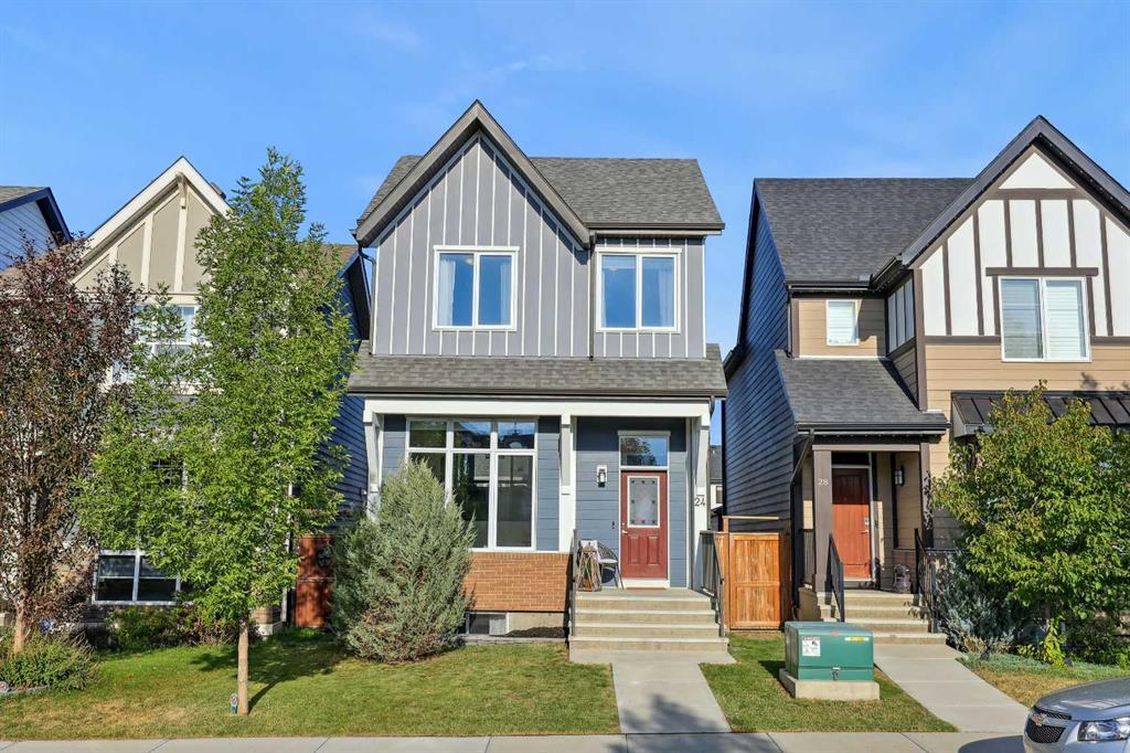 Welcome home to 24 Masters Link in the sought after lake community of Mahogany. This stunning Jayman built property boasts stunning 11' ceilings with large windows allowing ample natural light to flow throughout. The dining room is the perfect space for hosting family and friends; the upgraded glass railing and split-level design provides the feeling of an open floorplan with separation between the dining & living room. The kitchen features quartz counters with a sit up eating bar, plenty of storage, and stainless-steel appliances. Upstairs you will find the primary bedroom with a 3-piece ensuite and spacious walk-in closet. Hate hauling the laundry up from the basement? The thoughtful design includes an upstairs laundry room accessible from the hallway or directly through the primary closet. The upstairs is complete with two additional bedrooms, a 4-piece bathroom, and linen closet. The basement features 10' ceilings in the future recreation room. The basement has been partially finished with framing completed for a closet, roughed-in 3-piece bathroom, and utility room. A fourth bedroom is almost complete; only requiring the installation of doors. The floorplan and lot design provide the opportunity to add a separate side door for direct basement access. The landscaped backyard includes a lower patio, and a perfect area off the side of the garage for a future dog run. The double detached garage was built in 2019 and includes a subpanel. Additional upgrades to note include triple pane windows, HRV unit, tankless water heater, the dishwasher, refrigerator, and washer are newer (2023). Perfectly located within walking distance to Mahogany Beach Club, the wetlands, playgrounds, and East Mahogany Marketplace (convenience store, liquor store, nail salon, and pharmacy). Book your private showing today!