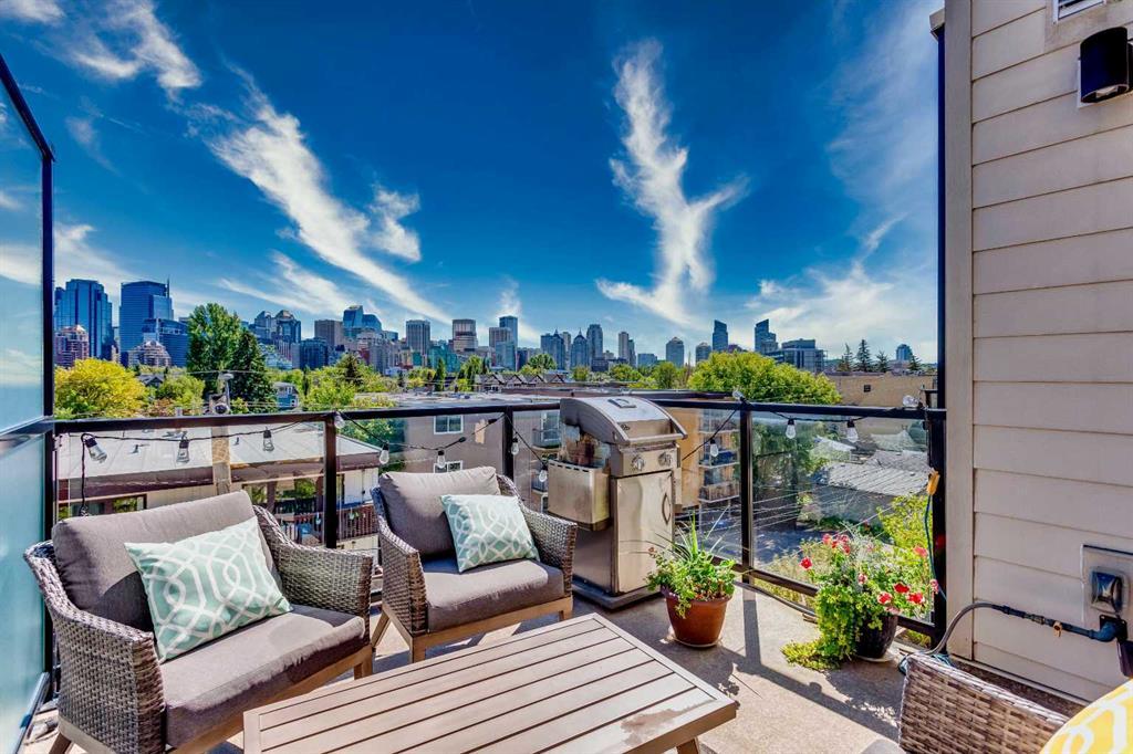 Amazing Downtown View | High Ceiling | Top Floor | Huge Balcony Patio | Underground Parking and Storage | Discover your new home in the heart of Sunnyside! This stunning 2-bedroom, 2-bathroom apartment offers a perfect blend of modern elegance and vibrant city living. Step into an open and bright layout, where high ceilings in the living room create an airy, spacious feel. The contemporary kitchen is a chef’s dream, featuring sleek stainless steel appliances, quartz countertops, and plenty of counter space for culinary creativity. Enjoy the luxury of a large balcony with a gas hook up and sweeping views of downtown ideal for relaxing or entertaining guests. The generously sized primary bedroom is tucked into the corner of the home and features brand new carpets, along with a view of downtown. Stepping through the spacious walk-in closet, you will find an ensuite that includes a fully-tiled walk-in shower and stone counters. A secondary bedroom which can double as an office sits conveniently next to the common four-piece bathroom. Near the entry to the home you will find a laundry room that houses an upgraded washer and dryer, while still leaving enough space for storage and closet space. Located just steps away from Kensington’s trendy cafes, restaurants, and Riley Park, as well as scenic walking paths around Prince's Island Park and the iconic Peace Bridge, you’ll have the best of Sunnyside at your doorstep. The underground parking stall will ensure your car is always secure and warm during winter. Embrace city living with style and ease in this exceptional apartment!