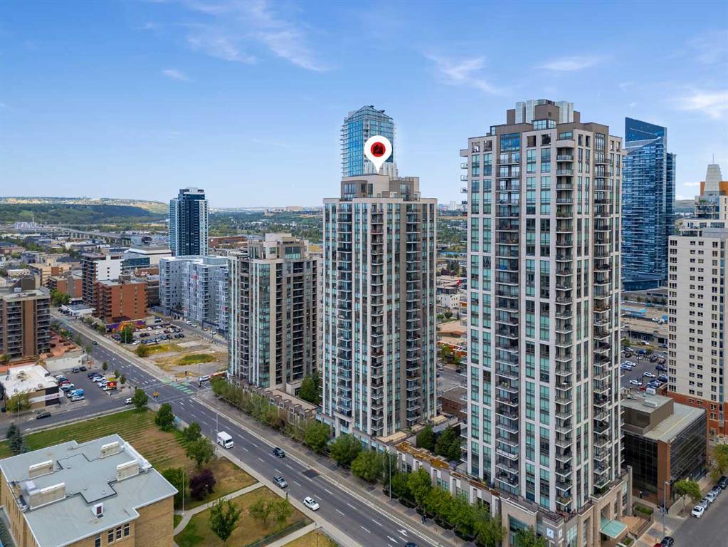 Click on the vitual tour for a preliminary look around. Welcome home to this AIR-CONDITIONED, trendy one bedroom condo with IN-SUITE laundry. 9’ ceilings and floor to ceiling windows bring in loads of NATURAL light from the SOUTH exposure. Enjoy relaxing on the balcony with PANORAMIC views of the city from east to west. Great location with the mid-town Co-op one block to the north, a short 5 block walk to the heart of 17th Ave, and just 6 blocks to the Bow River pathway system, not to mention the numerous coffee shops and restaurants in the immediate surrounding area. Walkscore gives the location 99/100 for its WALKABILITY for daily activities and the cycle track and public transit are right out front. The unit has a functional layout with an OPEN CONCEPT kitchen/living area and built-in desk space. The kitchen offers lots of cupboard space, stainless steel appliances including a GAS cooktop and garburator and finished with QUARTZ counters and a TILED backsplash. The bedroom offers the same great southern view, a walk through closet leading to the 4 pce bath and laundry area. A storage space and one TITLED parking stall complete the unit. Stall 371 is right out the doors on P4, super convenient and only sides onto one other parking space. Nova has it’s own fitness facility and lounge on the 2nd floor and bicycle storage as well as 24 hour concierge/security. It shares an outdoor courtyard, underground parking and guest suites with sister building, Stella.