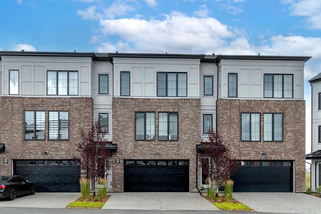Welcome to Griffith Point at Discovery Ridge. Experience the charm of townhome living in this turnkey gem nestled on Discovery Drive in this picturesque part of Calgary. This luxury brownstone blends modern elegance with classic charm, set against the backdrop of serene nature and surrounded by lush, mature trees. Step inside to discover an inviting space where every detail is crafted to impress. The entry features a stylish bench and a convenient closet located near the attached double garage. Upstairs, the light-filled interiors exude warmth and sophistication, with large windows covered by Hunter Douglas blinds and ten-foot ceilings. The heart of the home—the kitchen—is a culinary delight, with quartz countertops, pristine custom built cabinetry, a custom hood fan, built-in appliances, a gas range, and a generous island perfect for enjoying wine with friends while you cooking delicious meals. The living room features a sleek modern fireplace and French sliding doors leading to a balcony with tranquil views, a perfect area to enjoy summer barbecues. A nearby dining area is ideal for hosting seasonal gatherings, and a convenient powder room finishes this level. On the upper floor, take the stairs or utilize the discreet elevator to access the well-appointed laundry room and two spacious bedrooms. Each bedroom boasts beautiful windows, vaulted ceilings, and luxurious ensuites with dual vanities, rainfall showers, freestanding tubs, and large walk-in closets with custom shelving. The walkout lower level offers versatile space for a yoga studio or home office. This home also comes with Kinetico Dechlorinator and Kinetico 5 Stage Drinking Water Station / RO System. Enjoy easy access to the Rocky Mountains, West Hills shopping, Downtown Calgary, and Griffith Woods Park that is 93 hectares of protected park to enjoy by walking/bike paths. With top-rated schools and the Discovery Ridge shopping plaza close by, this stunning home is not to be missed!