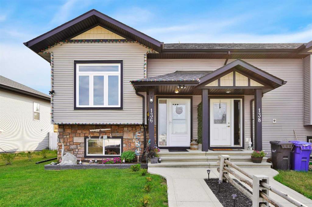 This upgraded 3-bedroom, 2-bathroom end-unit townhome, with no condo fees, features a fully landscaped yard, vinyl-fenced rear yard, extended deck, new firepit area, and a 2-car gravel parking pad. Inside, enjoy a complete appliance package, high-efficiency furnace, laminate flooring, and spacious living areas on both levels. Recent upgrades include A/C, central air, new windows with UV protection, a new hot water tank (2024), and storm doors and a freshly painted interior. Conveniently located near the new multiplex in Hawkridge Estates, this home offers modern comforts in a prime location.