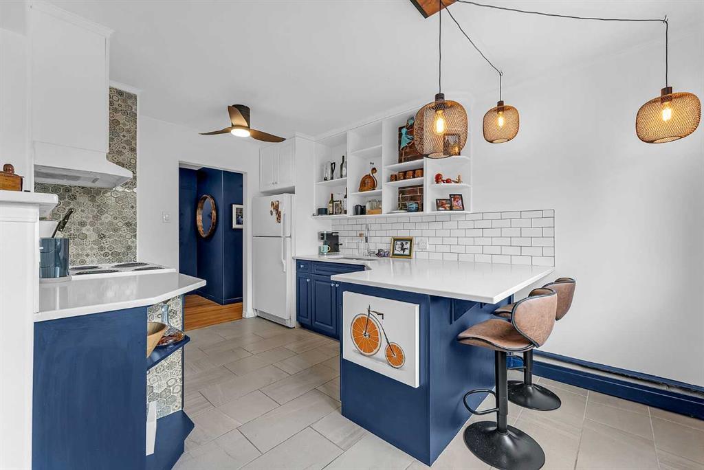 The Hamilton is an elegant mid-century condo building located just steps from the 21st Ave footbridge in the heart of Mission. With only 21 spacious, distinctive condos, residents benefit from a park-like ambiance with a shared riverfront courtyard, wide hallways, and a dedicated, proactive condo board. Enjoy the charm of mid-century design combined with modern amenities. Features include beautiful original hardwood floors, a central gas fireplace with stunning custom surround, and a sunny balcony just off the great room with views of the Calgary skyline and the Elbow River. With nearly 830 SqFt, this top-floor residence offers more than the typical downtown condo. The open great room can comfortably accommodate full-sized furniture with lots of room to entertain friends and family. The generously sized bedroom offers a glimpse of the skyline, an extra-large walk-in closet and an updated 4-piece bathroom directly across the hall. The kitchen has been beautifully redesigned with a large breakfast bar, ample work and storage space, custom quartz countertops, and a subway tile backsplash. Whether you're a skilled cook or just reheating leftovers, this kitchen will make you feel at home. Mission stands out as one of Calgary’s top inner-city areas, offering a gorgeous riverside setting with the Elbow River, Lindsay Park, and the Elbow River Pathway. You'll also be close to the vibrant 4th Street, known for its excellent shopping, dining, fitness clubs, and professional services, plus the ever-popular Calgary Lilac Festival every spring. Don’t miss your chance to experience the serenity of parklike surroundings combined with the convenience and excitement of a downtown urban lifestyle.