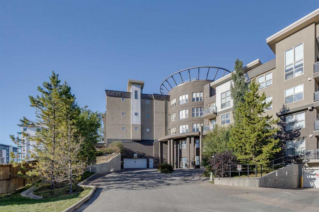 This luxurious 2-bedroom plus den condo is ideal for the professional couple with discerning tastes. Featuring soaring 9-foot ceilings, contemporary finishes, and expansive windows, the space is enhanced by a sleek gas fireplace and the comfort of in-floor heating. The kitchen boasts granite countertops, stainless steel appliances, and a convenient breakfast bar. The master bedroom includes a 4-piece ensuite and a walk-through closet. Step out onto the west-facing deck, where you can enjoy spectacular mountain views, equipped with a Phantom screen and a gas BBQ outlet. Additional amenities include in-suite laundry, heated underground parking (with covered, heated guest parking), a private storage locker, bike storage, and access to exercise and meeting rooms. Plus, it’s just a quick walk to shopping, theaters, and dining at Crowfoot Crossing, as well as easy access to LRT and public transit. This condo truly embodies the perfect picture of HOME.
