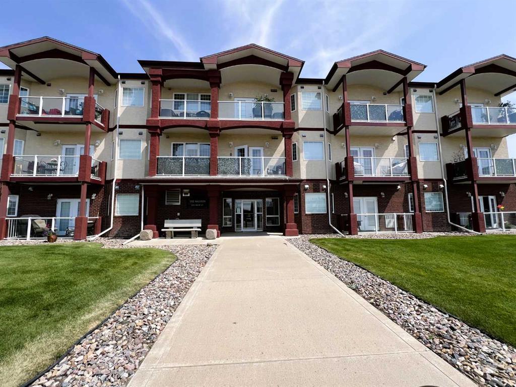 Enjoy peace and tranquility in this corner, top floor suite located in this beautifully maintained condo building called "The Madison at Main Street"! No one above you and being on the corner, ensures nice quiet living. Enjoy a cup of coffee while enjoying the morning sun on the east facing deck which provides great shelter from the wind & rain or escape the heat of the hot afternoon sun. Inside, this 2 bedroom, 2 bath suite has been lovingly maintained and shows just like new. There's plenty of space in the kitchen which offers a wonderful appliance package and conveniently flows into the living room so that you can easily visit with your company and enjoy the bright, natural light streaming in from the french doors. Imagine settling in for the night in the spacious primary bedroom which has plenty of room for your larger bedroom suite and brings in plenty of natural light in the morning from the beautiful bay window to get you started for the day. The walk in closet is conveniently right next to the 3 piece ensuite which also offers a perfect little mirrored medicine cabinet to help keep the clutter off the vanity. The 2nd bedroom is also spacious and could be perfect for an office or an exercise room or a spare room for your visiting company. There's a good sized storage room which is also home to the washer & dryer and it's just steps from the main 4 piece bath which includes a full bathtub. There's newer vinyl planking throughout the main living space and comfy carpet in the bedrooms to keep the chill off the feet on the chilly mornings. This unit would also be perfect for someone with mobility issues as there's an elevator - no more hauling your groceries up the stairs! This unit is one of the larger suites in the building. There's so much to appreciate here, so come take a look!