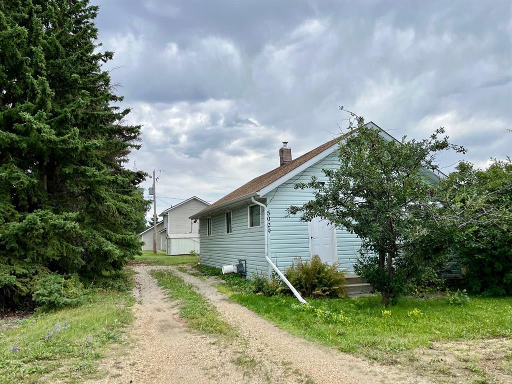 Cute little house on a decent sized lot on a quiet street. 2 Bedroom and 1 bath pad, perfect for 1-2 people. Large living room and kitchen w. all appliances included. The basement is concrete and has a place for the washer & dryer, however, there is a convenient place in the back area of the house that would be suitable for a washer & dryer on the main floor. Some of the windows are vinyl, the roof was redone in 2019 with GAF Timberline HD 50 year shingles, Hot water tank replaced in 2013, furnace replaced in 2003 with a High Def. furnace. The yard has big spruce trees by the drive through drive-way with back alley access. There are raspberries and a cherry tree. 2 sheds are included as well as the gazebo on the back deck. Nice private yard on a corner lot. Benalto is centrally located.