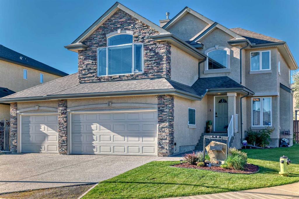 Located in Evercreek Bluffs. This massive pie shaped corner cul-de-sac lot is just under 10,000 sq ft. This beautiful house just went through a total kitchen renovation with new kitchen cabinets, new black stainless steel appliances and a huge custom built Island with plenty of storage & wine racks at both ends. New roof shingles in 2021. Hardwood floors were recently added upstairs along with custom built ins and a fireplace in the bonus room. The LARGE backyard has a RV pad with electrical hook ups, a 2 year old Hot tub with a Cedar wood Gazebo, a BBQ station with a Gazebo and a 3rd Gazebo at the far end of the yard. The basement is fully finished with a bedroom, 4 pc. bathroom and a separate walk-up basement door to get to the backyard. The heated triple car garage has an entrance into the house and separate french doors to take you directly into the backyard. Quick access to Stoney Trail, Costco and there's plenty of shopping and restaurant's near by. This lot is zoned R-G = "Low Density Mixed Housing". (From the City of Calgary's website: *Rezoning for Housing* "In the developing areas where R-G is used, most redevelopment will be in the form of an addition, or perhaps a secondary or backyard suite." Disclosure "subject to the approval and permitting of the city")