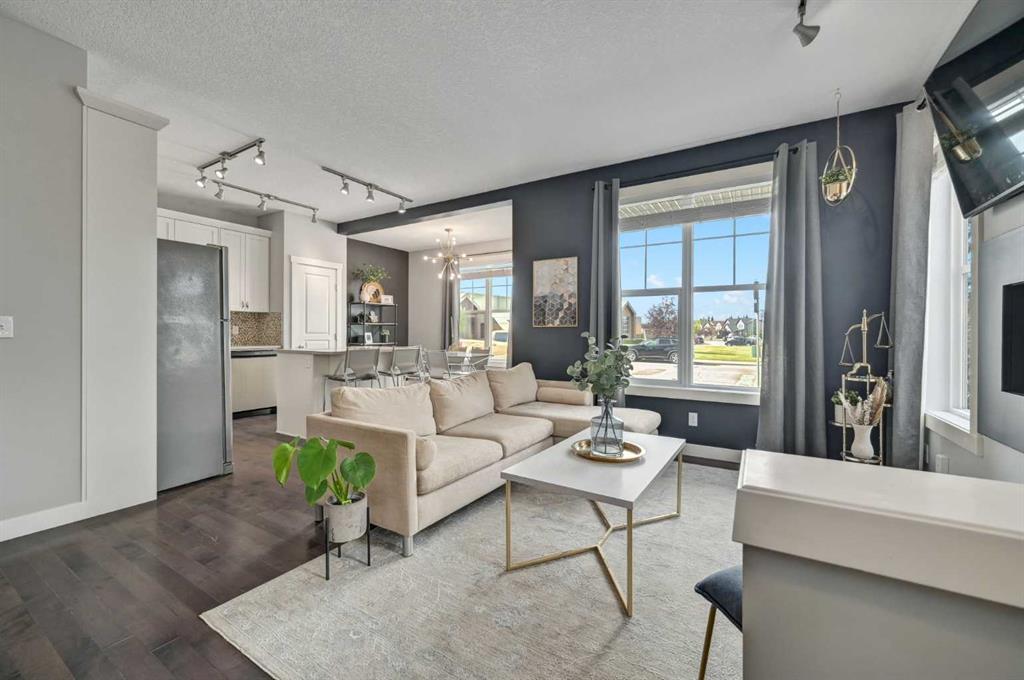 Introducing an exquisite new listing that promises the perfect blend of comfort and chic urban living! This stunning townhouse is located in Calgary's vibrant community of Cranston. This home spans an impressive 1202.63 square feet. The heart of this home features maple hardwood and tile flooring underfoot with a backdrop of neutral color tones, bathed in natural light from the many, generously sized windows. The kitchen will inspire your inner chef with its lustrous granite countertops, a stylish tile backsplash, and modern stainless steel appliances. Adjacent to the kitchen and dining area, the living room invites you to relax beside the cozy fireplace or gaze out across the tranquil green space. Venture upstairs where you will find two spacious bedrooms, each equipped with an ensuite and walk-in closet—offering a private retreat for everyone and MOUNTAIN VIEWS. The upper level offers new LVP flooring and the added convenience of an upstairs laundry. Ready for a personal touch, the basement provides a canvas for your imagination—the possibilities are endless, perhaps a guest suite complete with a bathroom and bedroom? Not to mention central air for your comfort during Calgary's hot summers! For healthcare ease, the South Health Campus Hospital is just a few short minutes away by car, adding peace of mind to the plentiful amenities this location boasts. The Cranston Market is at your doorstep, providing an array of shopping and dining options to suit any taste or need. Whether it's the turnkey readiness, the mountain views, or the exceptional location near all essentials, this townhouse is ready to be called home. Call today for more information!!