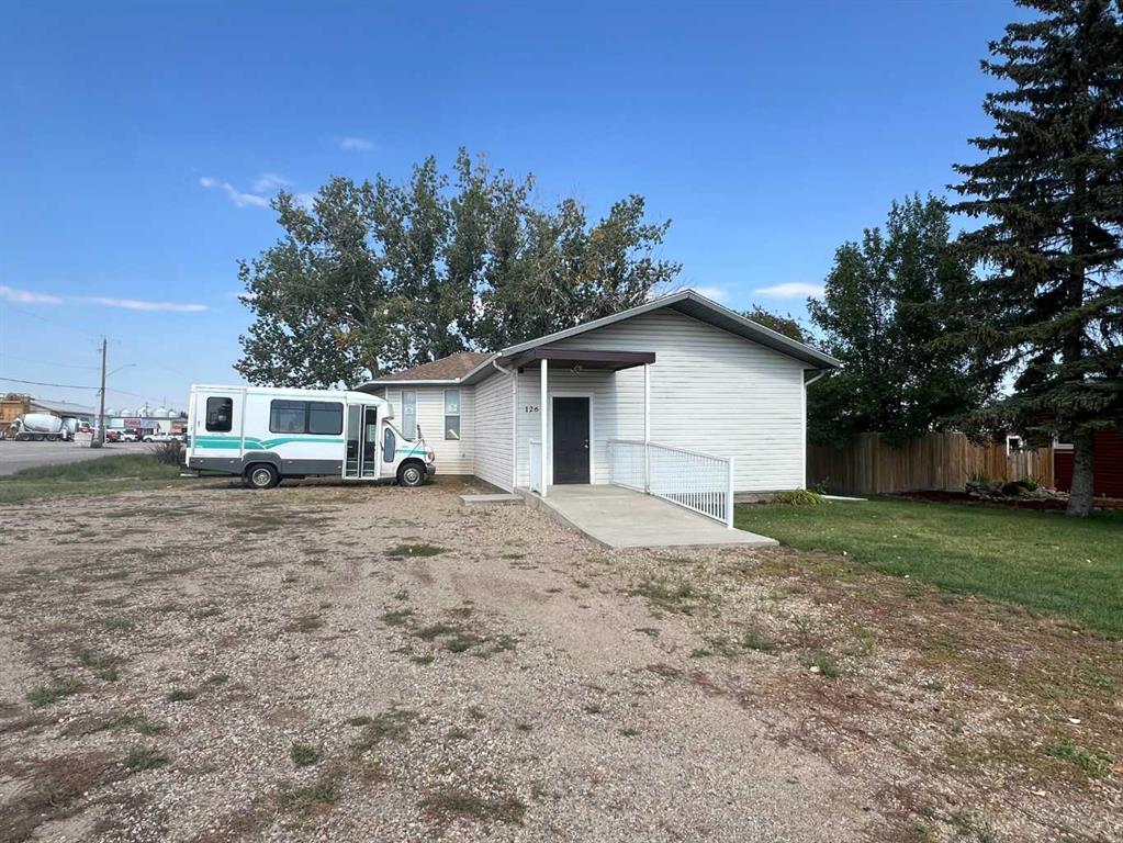 Single level building located on a corner lot in the Town of Vulcan for sale. This property was most recently used as a church, and has plenty of room for off-street parking. It is zoned P-1, Public Use. An application to change the zoning to commercial, or another use, would need to be done with the Town of Vulcan to make the change. The original building was 24 feet by 82 feet in size, and an addition built later on for the stage, storage area, and second bathroom. There are two 2-piece bathrooms (one at the south end and one at the north end), utility room, office, and storage room. There is a large open meeting area in the middle. The north end of the building also has a kitchen area, another storage room, and a large room. There is a 5 foot crawl space at the north end, and another crawl space at the south end of the building. Asphalt shingles are approximately 5 years old, and furnace is 4 years old. The hot water tank at the north end is about 2 years old, and there is hot water on demand at the south end. The owners would like to sell the property with all of the furniture and equipment (drums excluded). Please note that the 2024 tax amount is an estimate, as religious places of worship are tax exempt.