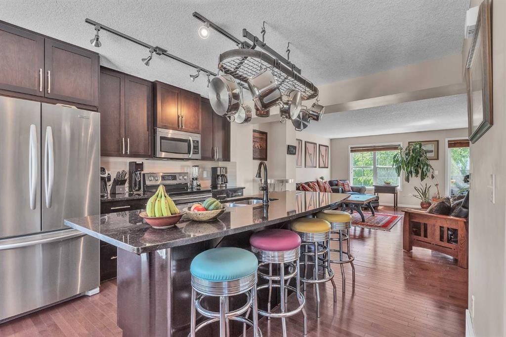 Spacious and bright 2 BED/2.5 BATH townhome offering 1481 SQ.FT of living space, with ATTACHED DOUBLE GARAGE, and a sunny balcony with MOUNTAIN VIEWS. The original owner has maintained this property well, and it has good quality features such as GRANITE COUNTERS, WOOD CABINET DOORS, STAINLESS STEEL APPLIANCES, and HARDWOOD FLOORS. The street level flex room is a bonus and provides an extra living space that could be utilized as a gym, office, or living area. Mosaic of Cranston condo complex is pet-friendly (max 1 pet) and well managed. Condo fees include landscaping, snow removal, insurance, sewerage, and reserve fund, making this very low maintenance for you. The property is steps away from shopping, amenities, schools, transit, and pathways. And this location is super easy for commuting too. This home would be perfect for those looking for a good-sized townhome in a walkable neighbourhood. Come and see why this could be a smart move for you!