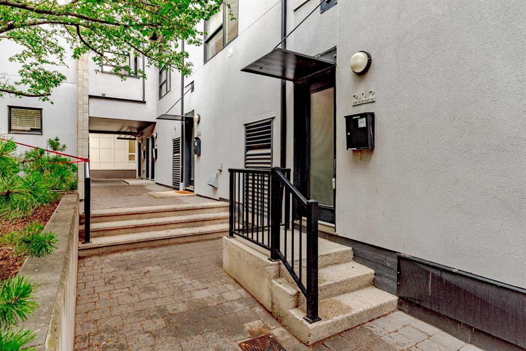 Welcome to this stunning townhome located in the heart of Bridgeland, a vibrant community known for its eclectic mix of shops and eateries, including Starbucks, OEB, Made by Marcus, and UNA. This beautiful property offers an exceptional blend of urban living and tranquility, with a quiet courtyard entrance surrounded by lush greenery and mature trees. As you step inside, you'll be greeted by an abundance of natural light that fills the spacious main floor. The inviting living room, complete with a cozy fireplace, seamlessly connects with the kitchen and dining areas, creating an ideal space for entertaining. The contemporary kitchen boasts a breakfast bar and stainless steel appliances, perfect for preparing your favorite meals. This main floor is completed with an oversized west-facing balcony. On the second level, the primary bedroom features a private balcony, a walk-in closet, and a luxurious 3-piece ensuite. The second bedroom, overlooking the serene courtyard, also includes a roomy walk-in closet. A 3-piece family bathroom and convenient laundry facilities complete this level. Continue up to the final level where you will find a rooftop terrace, offering breathtaking views of the surrounding area. This space is perfect for gardening, entertaining, or simply enjoying the spectacular Calgary sunsets and Stampede fireworks. Recent updates include hardwood and tile flooring, a new HVAC system with an integrated humidifier (2021), and a central vacuum system. The property includes two parking stalls in a tandem titled spot within the heated underground garage, along with an oversized private storage unit. For cycling enthusiasts, secure bike parking is available within the complex, providing easy access to the river path. This meticulously designed unit offers outstanding exterior spaces and a rare opportunity to experience the best of urban living in a serene setting. Don’t miss out on making this exceptional townhome your own!