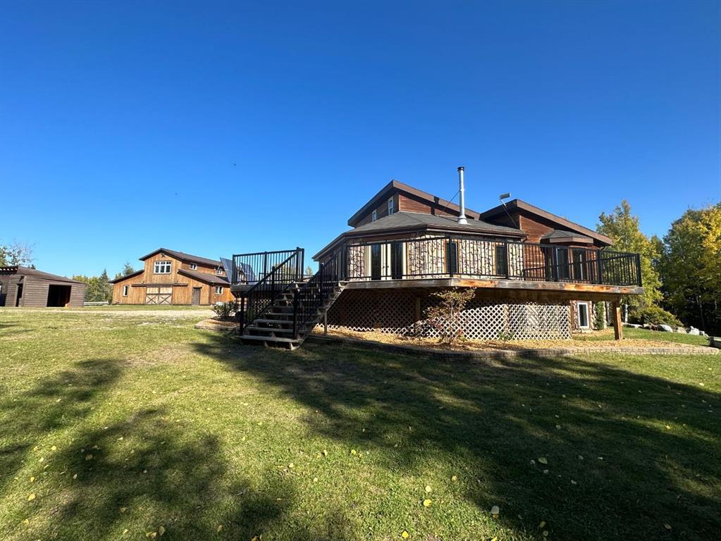Escape to your own private retreat on +/- 4.99 acres with a guest suite, barn, and shop! This raised bungalow with loft features 3 bedrooms and 1 bathroom, surrounded by an enchanting forest, giving a serene 'Yellowstone' vibe. The custom woodwork and stone detailing throughout the home are truly one-of-a-kind and cannot be replicated. Enjoy the wraparound deck, perfect for taking in the peaceful surroundings. The property is ideal for horse lovers with 3 fenced pastures, and the legal suite above the barn/shop offers 1 bed and 1 bath, perfect for extended family or guests. Located within walking distance to Strubel Lake, you’ll have endless opportunities for fishing, canoeing, kayaking, paddle boarding, and more. If you're seeking peace, quiet, and natural beauty, this acreage is the perfect escape. Don’t miss out on this unique opportunity!
