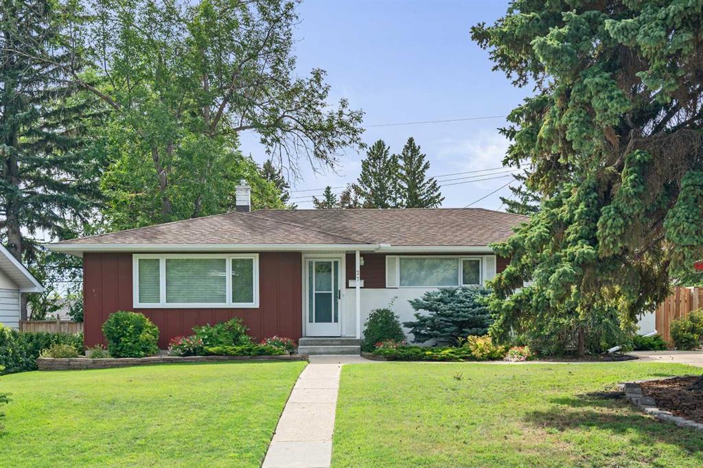 Opportunity knocks!!! This 1300 sq. ft. bungalow is a perfect blend of comfort and charm. It is nestled on one of the best streets in south Kingsland. This home boasts a spacious south-facing rear yard with a deck, patio and a power awning - ideal for outdoor gatherings and gardening. Upon entering, you are greeted by gleaming hardwood floors that flow throughout the main floor adding warmth and elegance to the living space. The main floor highlights a spacious living room with enough room to comfortably seat 8 people, a sunny dining room featuring sliding doors onto the rear deck, and a functional kitchen with a breakfast bar for informal meals. There is a four-piece family bathroom complemented by a three-piece ensuite in the primary bedroom. The main floor was originally designed with 3 bedrooms. One of them has been tastefully converted into a den - perfect for a home office or study, and easily converted back to a bedroom. The property has been meticulously maintained over the years and includes updated windows, roof, and furnace. The lower level is developed with 2 additional bedrooms and a large rec room providing plenty of room for a growing family. Excellent schools are within walking distance - Chinook Park Elementary which is a dual-track Kindergarten to grade 6 school offering French Immersion, and regular programming, and Henry Wise Wood High School (IB program). Woodman School is a short trip away for grades 7 - 9 and also offers French Immersion. Don't miss out on the opportunity to make this charming bungalow your own!