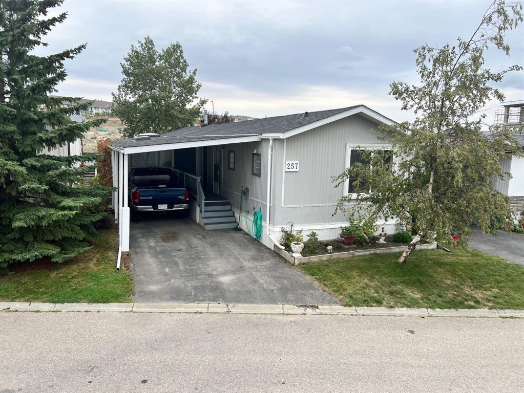 This excellent home comes with wide open main living area with vaulted ceilings, sliding patio doors from living room to an excellent sun-room which has skylight as well as access to carport and to very private back deck between added 3 season bedroom and storage shed, plus private treed back yard up to the tall fence. Front bedroom is next to the main bathroom and has it's very own little computer or tv room. The master bedroom at the very back of this spacious home has easy step-in tub, double closet and newer window. This home with so many updates and great features must be seen to be fully appreciated. Don’t miss it. Remember that the monthly lot rent of $825 includes water, sewer, recycling, garbage pickup, plus all clubhouse amenities. These amenities include outdoor heated swimming pool, indoor hot tub, sauna, billiards/games room, library and more! From here you also have easy access to the Arbour Lake LRT, many Crowfoot businesses, clinics, restaurants, grocery stores, and much much more! AND when you want to head west to the mountains , or north, or east or south, you have easy access to Stoney Trail for all directions.
