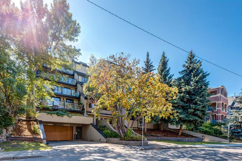 Located just over a block from the vibrant retail and entertainment of 17th Avenue, this immaculate home provides you with lockup and leave lifestyle while still having the square footage of a house. At a MASSIVE 1500+ sq ft, this Mount Royal executive condo is fully renovated with high end finishings, 2 bedrooms and 2 full bathrooms. Step inside this executive, classic building and notice the spacious lobby and hallways. Even the two heated underground parking stalls are larger than normal. With your unit just three steps from the elevator, venture inside through the large entry that easily accommodates multiple guests, and proudly show off your full-size dining room with acacia hardwood floors. Large, new, Pella sliding glass doors frame a beautiful view of downtown and provide access to your large, recently resurfaced patio, equipped with glass railings, natural gas hookup and even a second door direct to the kitchen. A massive natural gas fireplace in the living room serves not only as a great focal point but also provides a cozy spot to sit and unwind as you watch snow fall across the city in those winter months. Featuring a modern eat in kitchen, this unit has white cabinetry, granite countertops, stainless steel appliances and plenty of counter space. The large primary bedroom features large windows overlooking downtown, a walk-in closet that leads to an ensuite bathroom with a dual vanity and an oversize shower with bench. An additional bedroom can serve as an office, an exercise room or a guest bedroom. It features a triangular cutout matching the living room, which can serve as your new reading nook or an excellent place to grow your own indoor garden. A large in suite laundry room provides ample in unit storage in addition to the external storage unit and the storage at the front of your two side by side parking stalls. And, as a bonus, not only are your two parking stalls right by the elevator, but they are partitioned so you never have to worry about someone bumping your car with their door. This building also offers a common room that is setup for movie nights and doubles as an exercise room. This location is unbeatable; being nestled in Mount Royal with its serene streets, mature trees and some of Calgary’s most luxurious real estate. This is a unique home and is a must see!