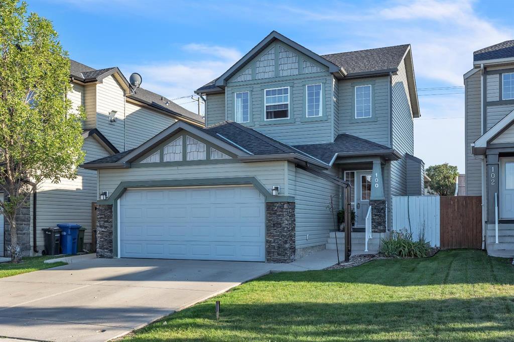 Welcome to this fully developed family home with a double attached garage, located on a quiet street in Cimarron Grove. A perfect opportunity for first time buyers, investors, or right sizers. As you enter, you’ll be greeted by a large front foyer featuring hardwood floors throughout the main level. The heart of the home is the open-concept kitchen and living area. The kitchen has an abundance of cabinetry, generous counter space, and a breakfast bar. The adjacent living room is highlighted by a gas fireplace. Main floor laundry, a spacious pantry, and a powder room finish off the main floor. The dining area transitions to the home's standout feature—a massive covered patio. Spanning the width of the home and is equipped with a gas line, Duradek flooring, skylights, and pot lights, allowing for year-round enjoyment. The south facing backyard, with no neighbors behind, offers ample space for outdoor activities and privacy. Back inside and upstairs the primary bedroom is complete with a walk-in closet and ensuite with a large tiled shower. Two additional bedrooms and a full bathroom up, ensuring plenty of space for the entire family. The fully developed basement is a versatile space, featuring a large rec room, an additional bathroom, and extra storage space. The double attached garage is equipped with 220V wiring, heating, and insulation. Additional comforts include central air conditioning and a water softener. This home is conveniently located just steps away from parks, shopping, schools, and the scenic river valley, making it an ideal choice for those seeking both convenience and community. Don't miss this incredible opportunity to enter the Okotoks market with a home that offers exceptional value in a highly sought-after price range.