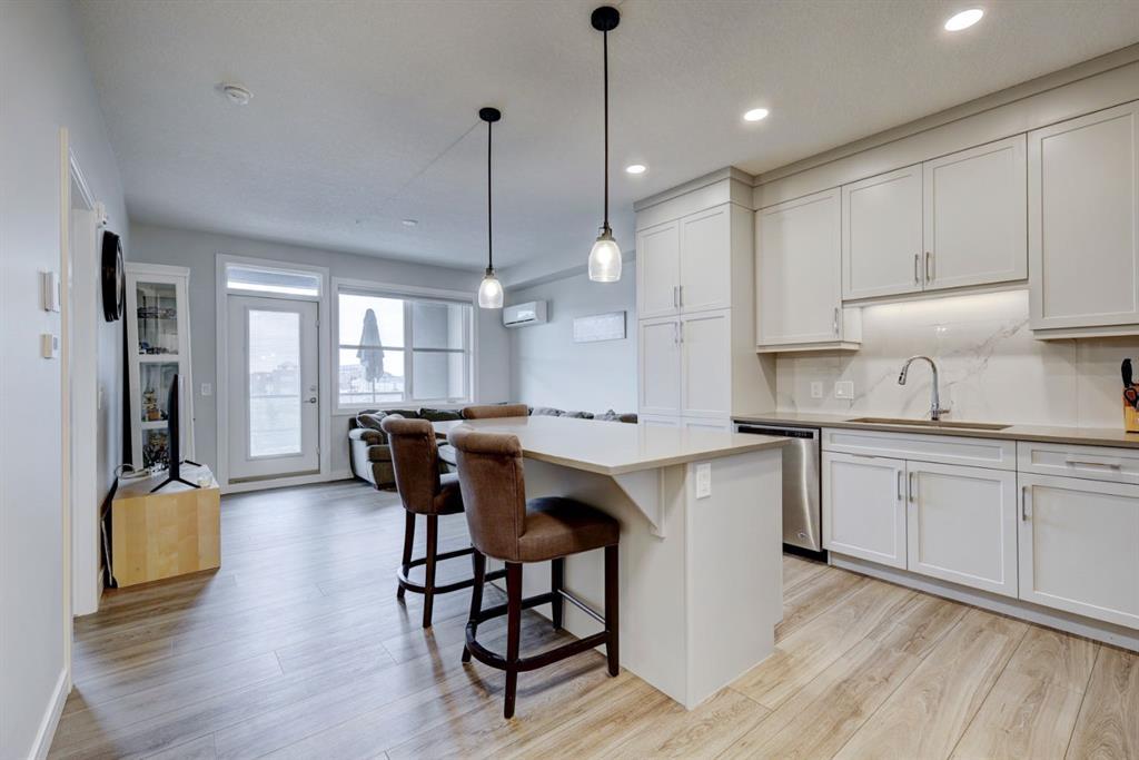 Located in The Apollo at Greenwich, with quick access to 16th Avenue and Stoney Trail, this exquisite 1 bedroom, 1 bathroom condo offers the perfect blend of luxury and convenience. Perched on the third floor, enjoy sweeping westward views from your expansive balcony, complete with a BBQ gas line for those evening barbecues. Inside, discover a haven of modern living with sleek luxury vinyl plank flooring that flows seamlessly throughout, except for the cozy carpeted bedroom. The kitchen boasts, upgraded appliances, ample cabinetry and storage, ensuring all your culinary needs are met with ease. Stay comfortable year-round with the split air conditioning unit in the main living area, and enjoy the convenience of in-suite laundry. This condo also includes a separate assigned storage unit and a titled underground parking stall with an additional storage cage, providing ample space for all your belongings. Just steps from the Calgary Farmers Market as well as other surrounding amenities, and a short stroll to the tranquil Bow River pathways, this residence is not just a home, but a lifestyle. Book your private viewing today!