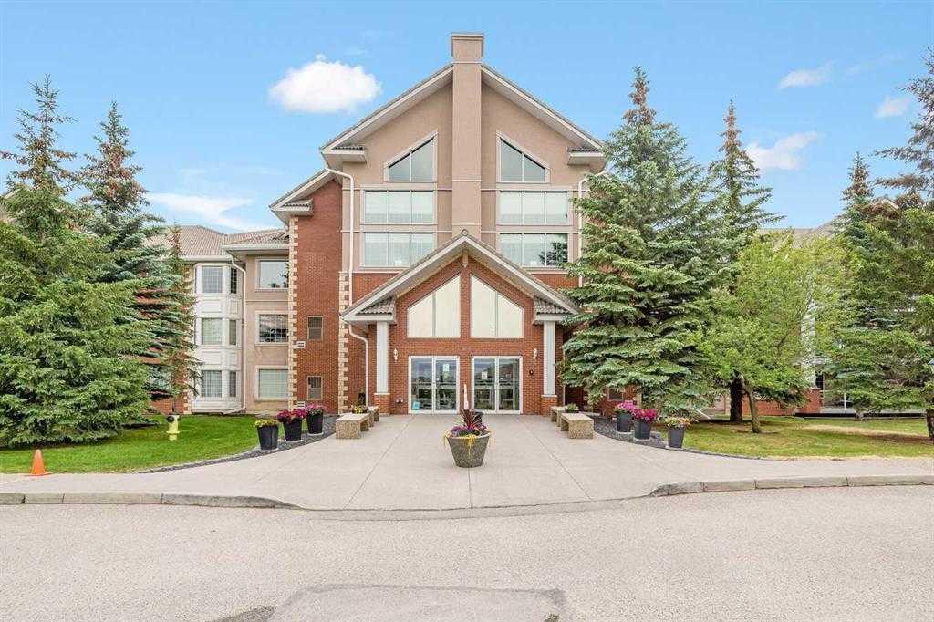 This former show home is a corner unit offering 2 bedrooms, over 1300 sqft and features a non-slip epoxy stone flooring in the foyer, laundry room, 3-piece entrance bathroom, Walkin closet and Ensuite for your safety and ease of use. The condo also makes great use of space with various pocket doors and french doors alike. The unit offers lots of natural sunlight and offers a wraparound south and west facing balcony. Inside you will find 2 well-appointed bedrooms and 2 full bathrooms. The ensuite features a jetted spa bath and separate walkin shower. There open galley kitchen is adorned with oak cabinets, a sunshine ceiling and onyx granite counters. A breakfast nook, spacious formal Dining room and a large living room featuring a gas fireplace make it complete. This Condo complex is one of Calgary's premiere buildings with the following amenities: 2 underground car wash bays, Gym, Pool, Hot Tub, State of the Art Gym, Pool and Snooker tables, Library, Card and TV room, Crafts room, Wood working shop, Massive Party Room with full Kitchen and Dance floor. This condo includes two assigned parking stalls and two storage lockers. Come view this amazing Condo today.