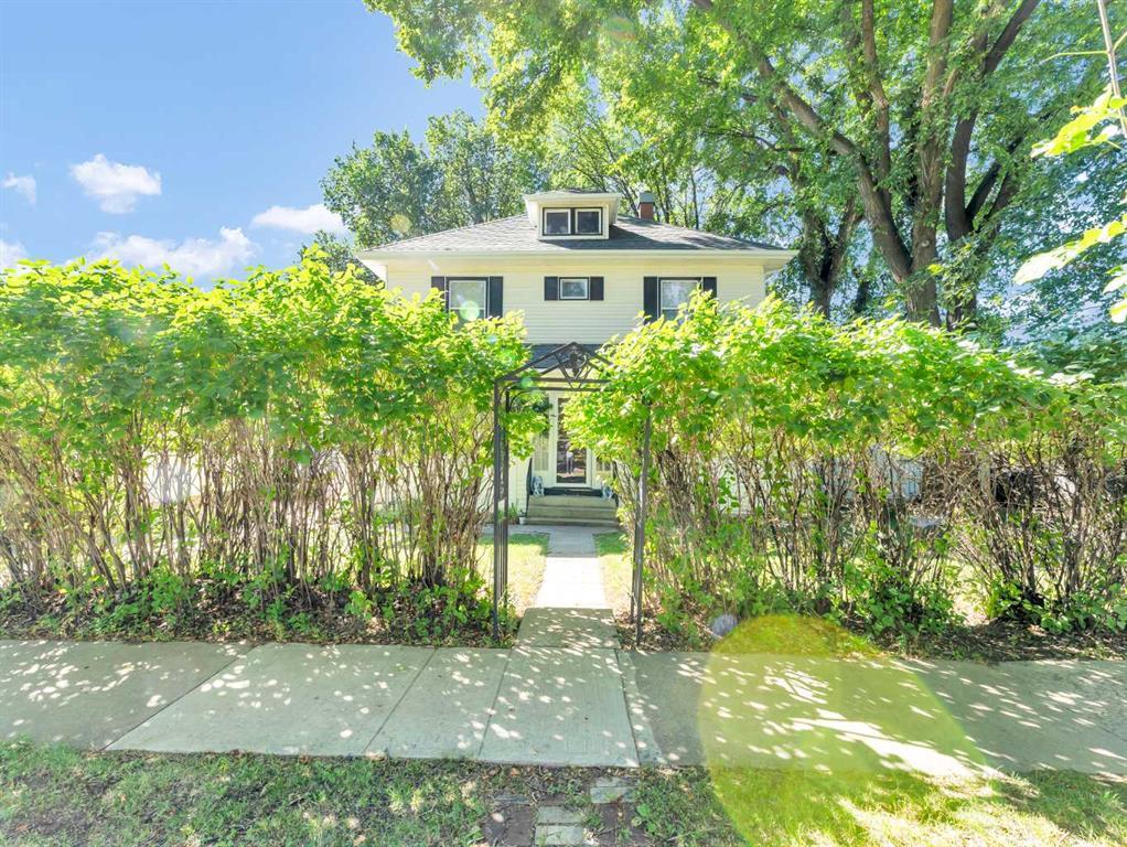 This beautiful 2 storey home, on a tree lined street in historic Riverside, has 4 bedrooms (3 with walk in closets), 2 bathrooms, 2 GARAGES, and a large fenced yard! The covered veranda on the front of the home is a fabulous vantage point for watching the world go by. Inside, the hardwood floors throughout, make this large home feel cozy while keeping maintenance a breeze. The large sitting room has double pocket doors which lead into the formal dining room which has plenty of natural light and flattering architecture. The kitchen has fun linoleum and backsplash, upgraded appliances, and room for a small table. In a recent years, a main floor washroom was added and there is an office/study on the main floor which could be used as a flex space for all your needs. Upstairs, the original stained glass window is a reminder of the glory of this heritage home, and is an appreciated addition to the large foyer on the upstairs landing. A 4 piece family bathroom as well as 4 large bedrooms keep the family space separated from the entertaining areas of the home. The basement is developed with a large family room, huge storage area as well as a laundry room with double sink. The detached single garage has a driveway which could be used for RV parking, while the detached double is a great workshop or room for your classic cars. There is a shaded patio area on the side yard, as well as a yard with room to play. This home has a very private yard in the front and the rear, and will make the perfect place for many more decades of memories. The shingles were updated in the past 2 years, there is a high efficiency furnace, upgraded electrical, and mostly newer plumbing. The property has been kept in wonderful condition, and maintained well so that its beauty can be appreciated with little upgrading required. Please check this unique property out for yourself, and book a viewing today.