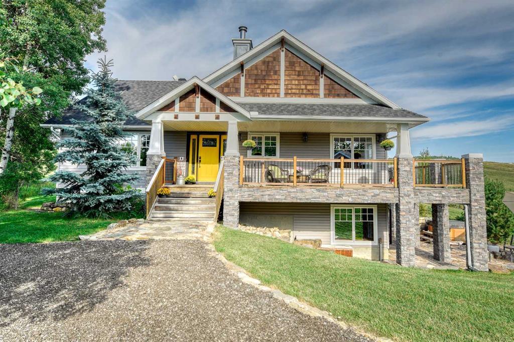 This property is sold pending deposit Sept 11, 2024 The Foothills are calling! It is time for you to escape the hustle and bustle of city life and retreat to your 4.37 acre, treed, tranquil acreage with central location, only 20 minutes to Calgary, Okotoks and Diamond Valley. Built in 2007 by Astoria homes and thoughtfully designed by the original owners there is nothing you won't love, from the rich oak trim, custom built-ins throughout, accent and pot lighting, electric in floor heat in kitchen, basement entertainment area, ensuite and downstairs bath! Enjoy your morning coffee with mountain and pastoral views from your wrap around deck with brand new railing or after a long day relax in your hot tub. Enjoy a bright and airy atmosphere with large windows throughout and cozy gas fireplace with durable laminate and tile flooring. Impressive kitchen offers a custom-built hutch with rich, warm tones paired beautifully with elegant ivory cabinets, stainless steel appliances (including gas stove) creating a space that's both functional and stylish. Perfect for effortless cooking and entertaining. The laundry room is thoughtfully designed for convenience, featuring modern appliances alongside a dedicated dog bath, making pet care and household chores seamless and efficient. Two well-appointed bedrooms including the primary bedroom with access to a spacious, beautifully designed five piece ensuite bath and an excellent walk-in closet with built-ins for optimal organization. The second bedroom with custom built-in bookshelves enjoys proximity to a chic, retro-style main bath, adding a touch of vintage charm. The walkout basement is the perfect haven, offering a cozy and inviting space for relaxation and entertainment. It's designed to cater to all ages with its versatile layout and amenities, featuring a games room complete with a pool table, in-floor heat and a cozy wood-burning stove. It also includes a charmingly rustic country-style wet bar, perfect for hosting gatherings. Two large bedrooms provide ample space for guests, while a dedicated home gym area with sauna included caters to your fitness needs. The icing on the cake is the detached triple garage with work shop, convenient loft for additional storage and wood burning stove. YOU DO NOT WANT TO MISS OUT! View Today.