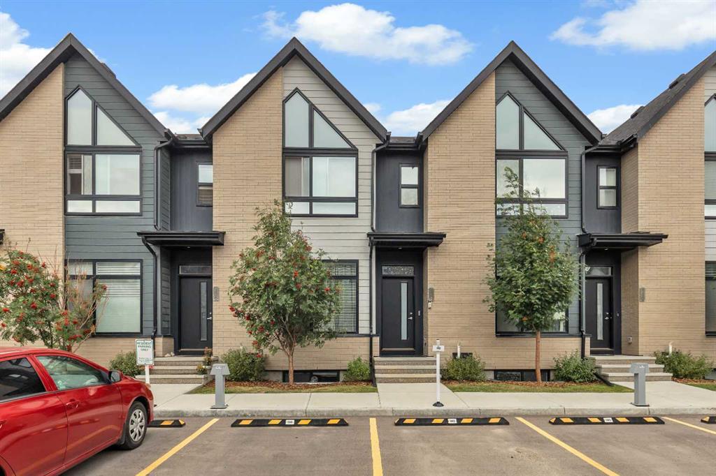 Introducing an exquisite townhouse at Arrive Sage in Sage Hill, just minutes away from a scenic pond and serene walking paths. This two-story unit boasts unparalleled privacy with no rear neighbours, a main floor featuring 9-foot ceilings and stylish dark grey vinyl plank flooring. The modern open-concept floorplan includes a front living room, dining area, and a kitchen with pristine white quartz countertops, stainless steel appliances, an upgraded stove, elegant full-height cabinetry, and an inviting island with a spacious eating bar. A 2-piece bathroom and a rear door leading out to a semi-private west-facing concrete patio, offering an ideal spot for basking in the evening sun. Upstairs, the primary bedroom captures attention with its soaring vaulted ceilings, a walk-in closet, and a luxurious 4-piece ensuite with quartz countertops. The second primary bedroom also features a walk-in closet and a 4-piece ensuite. Additionally, you'll find an upper-floor laundry room with ample space for storage. The partially finished basement already features drywalled outside walls, roughed-in plumbing for a bathroom, On Demand Water Heater and two generously-sized windows awaiting your personal touch. Upgraded lighting fixtures throughout, an abundance of large windows for natural light, and a parking stall just outside the front door are among the additional highlights. This exceptional property is a must-see in proximity to shopping, restaurants, and major transportation routes. Schedule your private showing today and experience a lifestyle of unmatched comfort and convenience.