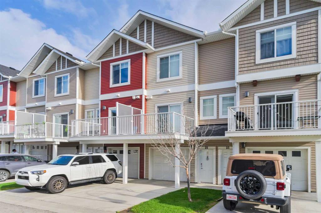 **OPEN HOUSE CANCELLED* Welcome to your dream home, thoughtfully crafted for young couples and small families! This stunning townhome offers 2 spacious bedrooms and 2 modern bathrooms, each featuring built-in shelving for extra convenience and storage. The lower level includes a versatile flex room that can be customized as a home office, playroom, or guest space—designed to fit your lifestyle. The open-concept living and dining area is bathed in natural light, creating a welcoming atmosphere ideal for both entertaining and relaxation. The kitchen boasts a large island, perfect for culinary creations, along with stainless steel appliances and a high bar, making it easy to entertain family, friends, and guests. Step outside and enjoy two private balconies, ideal for morning coffee or evening BBQs. The attached single garage offers secure parking and extra storage space. One of the highlights of this home is its peaceful setting, backing onto a lush green space where you can unwind and soak in the beauty of nature—your own quiet retreat from city life. Conveniently located just minutes from Stoney Trail Highway, commuting is a breeze. You’ll also be close to CrossIron Mall, providing an array of shopping and dining options. Nearby parks, schools, and recreational facilities further enhance this home's appeal for young families. Don't miss out on the chance to own this stylish, functional, and ideally located townhome. Schedule your private tour today and discover everything this home has to offer!
