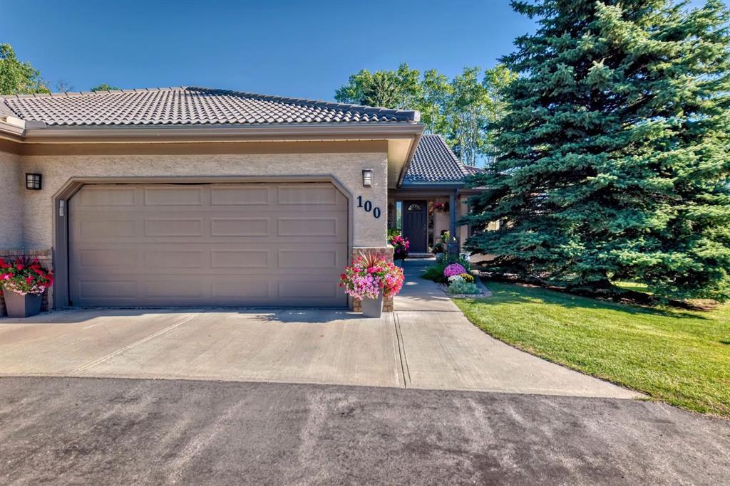 Welcome home to tranquil living at Priddis Green. This inviting villa backs onto # 8 Raven and a private, park like Setting. The home features a spacious floor plan with vaulted ceilings in the living room and Primary bedroom. The sunny island kitchen has loads of cabinet space. The large dining room is the perfect place to entertain family and friends. The en-suite features, heated floor, a walk-in shower with Exact Temp spa system featuring 4 body jets plus two showerheads - it is the perfect end to a day of golfing or cross country skiing at Priddis Greens Golf Course. A study, guest bath and laundry room round out the main floor. The fully developed walk-out basement has a large family room with a cozy gas fireplace, a wet bar and access to the lower patio. This level also features a large guest suite with walk-in closet, and three piece bath. Another office are rounds out the front part of the development. This lower level also has a great storage corridor and a large area in the back for storage, a home gym or a hobby area. Priddis Greens is a wonderful community that offers events throughout the year. Recent improvements include new carpet in August, Fireplace insert 2022, New Hot water tank, 2021, all poly-b replaced 2020. New irrigation manifold installed Aug. 2024. There is also fast fibre optic available!