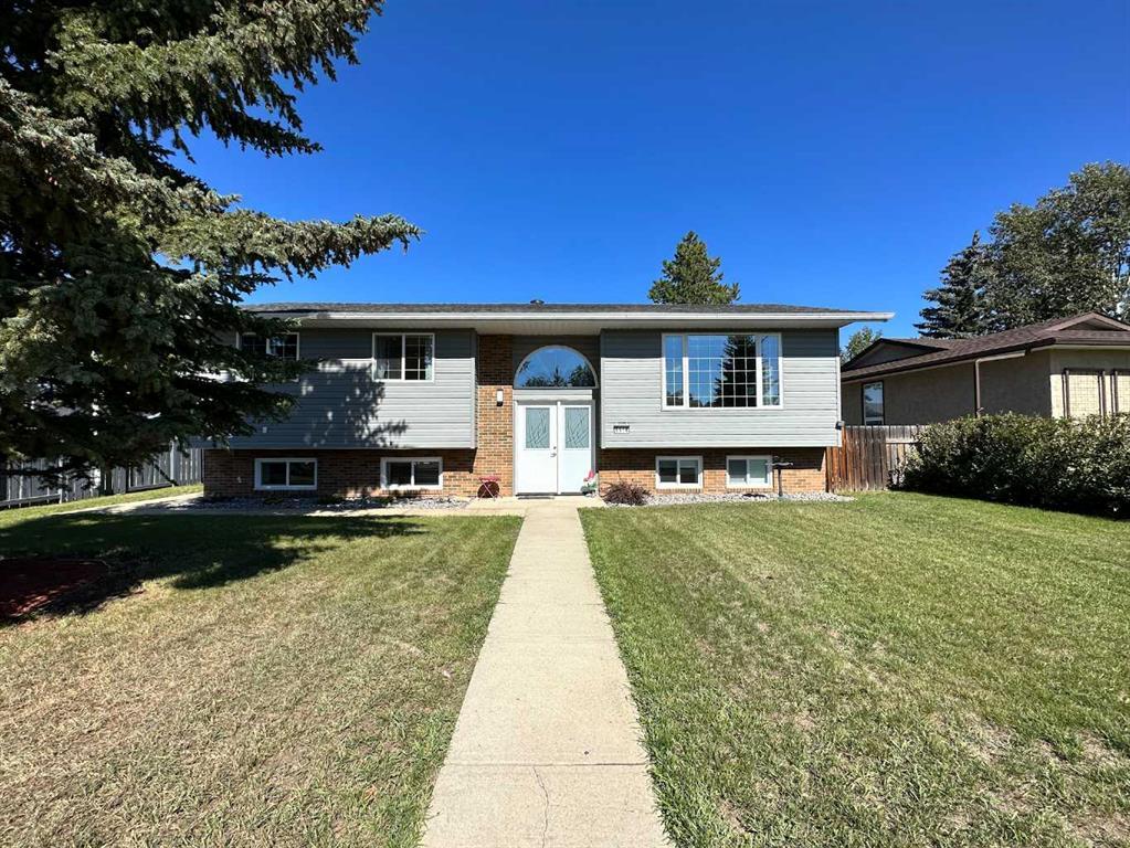 FANTASTIC BI-LEVEL IN ESTABLISHED, FAMILY NEIGHBOURHOOD WAITING FOR A NEW FAMILY.... 4 bedroom, 3 bathroom complete with fully developed basement, central air, and fully landscaped yard with a large deck AND 22' x 22' garage. This home is fully loaded! Equipped with a fabulous kitchen boasting loads of cabinet space, beautiful tiled backsplash, newer stainless steel appliances, and lots of room for an 8-person dining suite. Just off the kitchen is a large and inviting living room. Down the hall is a good-sized primary bedroom featuring a 2 pc ensuite with a new vanity, and two additional bedrooms offering versatility for guests and/or children, ensuring everyone has their own private retreat. The main floor has been recently upgraded with new vinyl plank flooring, carpet, trim, and doors. The front entry door is also new and is custom-made for easy moving. The spacious basement offers a large bedroom, a full laundry room(with a walkout to the yard), and a huge rec room, providing endless possibilities for family activities and entertainment. The outdoor space is equally impressive, with a large deck offering a view of the empty greenspace behind the home. Imagine summer evenings enjoying the serene surroundings, with a new fence ensuring your privacy. There is a double detached garage and RV parking which is a huge bonus! Located in the welcoming Grandview community, this home is just a short stroll to the recreation centre and West Stettler Park. Enjoy the convenience of nearby amenities while savoring the peaceful, family-friendly environment.