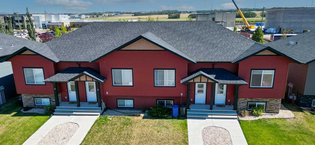 QUICK POSSESSION IS AVAILABLE! This "turn key" 3 bedroom 2 bathroom townhome is situated on a quiet close in close proximity to the Multi-plex, schools, full service shopping amenities. Unbeatable location and only a 7 minute drive to Red Deer. The upper floor consists of an open kitchen/living room/dining room design. Right off the kitchen is a garden door to the sunny east facing covered deck with additional deck built on ground level, a huge storage shed, a fenced rear yard (white vinyl) and a 2 car parking pad. The balance of the upper floor consists of a full 4 piece bathroom and a bedroom. The lower level has a massive bedroom that could be used as the primary bedroom or a living room/flex room. It also has another bedroom, a full 4 piece bathroom, under stair storage with shelving and a stacked washer dryer. This home is a must see for those wanting a turn key property to live in or rent out. Balance of new home warranty to be transferred to new owner.