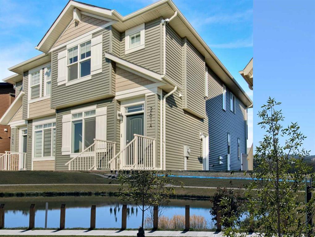 Located in the new SW community of Pinecreek is this spacious, attached home with a LEGAL builder-built basement suite, and DOUBLE detached GARAGE. Situated on a prime lot across from a pond, this property will lift up your spirits when you look out your windows over the beautiful panoramic view. The foyer opens to a spacious living room with 9-ft high textured ceiling leading to the separate dining room. The kitchen with island and a large window over the sink is highlighted by quartz countertops, stainless-steel appliances with bottom-freezer fridge, full height cabinets and pantry. Off this well-laid-out kitchen is a mudroom that opens to the fully-fenced backyard with CONCRETE patio and artificial grass for low maintenance living and year round enjoyment of your yard. Let the kids loose in the yard and keep an eye on them through that large kitchen window. Bonus built-in 4K security cameras (14TB cloud storage included) with the mechanical room server rack provide additional peace of mind for the safety and security of the family. Upgraded LVP flooring on the main floor continues up the stairs to the laundry room, where it continues with upgraded, plush carpeted flooring throughout the upper level. On this level you find 3 spacious bedrooms, all with walk-in closets. The large primary bedroom, with a full ensuite bathroom, has an unobstructed view of the pond. Full concrete sidewalk from the front of the house leads to the private side entrance of the builder-finished 1 bedroom legal suite. The masterfully designed suite has a luxurious kitchen with plentiful cabinet space for storage, eating bar and window for natural ventilation. The basement bedroom also has a large walk-in closet and oversized, upgraded window and 9 foot high ceiling. A detached fully insulated & drywalled double garage rounds up this incredible property. The garage is equipped with a WiFi Door opener and 240V, 40A power for Level 2 Fast Electric Vehicle charging. Nothing remains for you to do than sit back and enjoy your new abode. You have arrived!