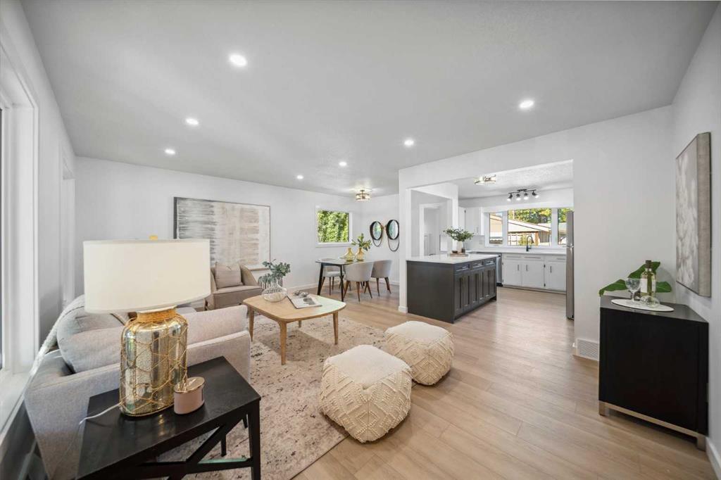 Welcome to this beautifully updated bungalow situated on a generous lot across from a school, in a tranquil 30km/h zone. As you step inside, you'll be greeted by a long foyer featuring a convenient coat closet. To your left, the open layout seamlessly combines the living room, dining area, and kitchen, creating a perfect space for entertaining family and friends. The kitchen is a standout, showcasing a brand NEW island with seating, a complete set of stainless steel appliances, updated light fixtures, and a stylish NEW backsplash. The entire main floor is adorned with NEW vinyl plank flooring, ensuring easy maintenance and a modern feel. On the opposite side of the house, the master bedroom offers a private retreat with a 2-piece en-suite featuring a window, and a walk-in closet with double doors for easy access. Two additional bedrooms and a full bathroom complete this level. Downstairs, the basement provides versatile living spaces including a nook/den or flex room for your needs. The expansive family room can be divided into a TV area and a game space. This level also features two additional bedrooms, a full bathroom, a laundry area, and plenty of storage. The backyard is a serene oasis with a garden, fruit trees, a large grassy area, and a concrete patio. The side of the house enjoys nice shade from the surrounding trees. The double detached garage provides ample space for parking. Conveniently located near schools, parks, golf courses, and shopping, this home offers both comfort and an excellent location.