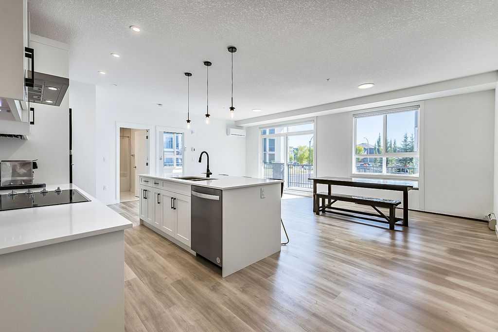 Welcome to Unit #108 - 25 Walgrove Walk SE. Absolutely Pristine apartment condo in the heart of the SE's Newest communities. This stunning apartment is likely the nicest I have ever had the pleasure of listing in my career. With over 1030 sqft (Builder size advertised as 1104 sqft) this is certainly not your average size apartment condo. Built by one of Calgary's most popular builders (Cardel Lifestyles) this Evergreen XL Floor plan is large, bright and open. Over $30K in upgrades including quartz countertops, stainless built in appliance package, 41" high cabinets with undermount lighting, high end window coverings, as well as Air Conditioning and a gas line for your barbecue. You will notice immediately how bright the home is with extra large windows and a large patio door. The extra height in the ceilings allows for the extra light and makes this apartment feel much larger. The modern Vinyl Plank flooring is easy to maintain and very welcoming with neutral colors. With 2 bathrooms including a wonderful ensuite with floor to ceiling tiled shower, and tile floors and upgraded undermount sinks. Not only is the interior living space incredibly large the exterior patio space is the largest I have seen. With over 200 sqft of wrap around patio space this unit is perfect for entertaining or just enjoying the weather. Enjoy the convenience of ground floor living with a newly installed gate directly to the patio. The location is very close to shopping, and all of the amenities you would expect in a new community in Calgary including very easy access to Macleod Trail and Stoney Trail. Also included is an underground separately titled parking stall and storage locker. Absolutely in better than new condition, if you are looking to enjoy apartment style living without the sacrifice of modern upgraded living space then you must see this home. This is the one.