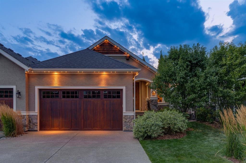 If you’ve been waiting for one of these highly sought after villas to be within reach, then your patience could be rewarded. With fewer than 40 units in the complex these homes do not become available on the open market very often and it’s easy to see why. This particular unit was built to the highest standard and a testament to the virtuous foresight shown by Calbridge Homes when creating the Villas of Riverstone. The entire home has Huntwood cabinetry, including kitchen, all bathrooms and wet bar, which comprise dovetail wooden box design and soft close fittings. Throughout the property you will find custom built-in’s, professionally installed draperies, hardwired sound system with multi-zone control, engineered hardwood and upgraded baseboards. The kitchen has dual built-in convection ovens. The smaller unit doubles as a microwave meaning you won’t have to prioritize the importance between cabinet storage space. Instead you keep the storage and the aesthetic which is further enhanced by the elegant custom range hood. This home is climate controlled by a Honeywell multi-zone heating and cooling system. However, when you need it, the property has central air-conditioning to keep you cool and a gas fireplace to keep you warm, both of which are quality built by Lennox. The attached double garage has epoxy coated flooring and a side garage door opening system was installed to accommodate a car lift. The main floor is perfect for longterm hassle-free living due to the thoughtful layout. In addition to the beautiful kitchen, spacious dining area and well appointed living room, the primary suite is located on the main level. Not only does the primary offer a luxurious 5-piece ensuite along with a large custom built walk-in closet, the sleeping area has been fitted with electronic blackout blinds for peace and privacy. To complete the main floor you’ll find a conveniently placed office, laundry area, ample storage, tasteful powder room and access to the sunlit patio situated in the complexes manicured greenway. If you need more space the lower level awaits with 9ft ceilings, custom designed wet bar and huge media room for movie nights or when hosting friends to watch the “big game”. When family comes to visit you’ll be able to offer them privacy on the lower level with two generously sized bedrooms and full bathroom. If the family visit happens to be over the holidays you won’t need to pull out the ladder because Gemstone Lighting has been added out front and can be turned on with just a few clicks. Properties of this caliber don’t come up often, especially within a community offering all the amenities you want, surrounded by the natural beauty of Fish Creek Park, and with the allure found in the Villas of Riverstone. This property truly feels like a home, but offers maintenance-free living and convenience so the new owner(s) will have more time to enjoy the finer things in life. Condo fees cover ALL exterior maintenance and includes replacement of windows, roof & more.