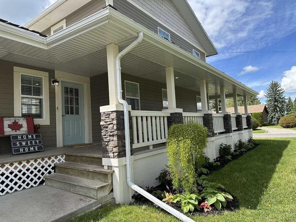 For more information please click the Brochure button below. Come see this 2 story fully finished, beautiful family home! Located on a corner lot of a cul-de-sac with mature trees including 2 well producing apple trees. The exterior includes a beautiful wrap around front porch for watching the sunsets, and in the back yard a large deck for bbq’s and watching the kids play on the cement pad and yard. The large master bedroom is located upstairs along with 3 additional rooms and 2 full bathrooms. Main floor consists of a beautiful living room with large windows, and a cozy library, a half bathroom and a large kitchen. The kitchen has been fully updated with granite counter tops, solid wood cabinets, and hard wood floors throughout. The basement is where the kids will want to gather with a TV/game room, a fitness room, and another full bathroom. Also included in the basement is an extra bedroom for company or older kids, and a large cold storage room for canned goods and works great to store your potatoes and onions all winter. The neighbourhood is beautiful with plenty of trees, close to schools and great for kids who want to run and play and make friends.
