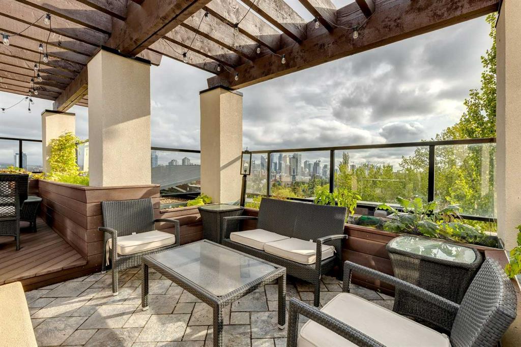 Elevate your lifestyle with this exquisite third-floor southeast corner unit, where contemporary elegance meets functional design. This 2-bed + 2-bath home, over 1,000 sqft, offers a thoughtful floor plan inviting relaxation and entertainment. Upon entering, you are greeted by an open space with 9' ceilings, natural light streaming through expansive windows that frame an urban forest, and captivating views of the cityscape, which include the Calgary Tower. With a zen-like ambiance, this home provides a sense of tranquility amidst the hustle and bustle of the city. The seamless flow between the kitchen, dining, and living areas creates an inviting atmosphere, ideal for intimate gatherings and large celebrations. The gourmet kitchen stands as the heart of the home, showcasing modern appliances, a rare in-suite pantry, and a spacious island that doubles as a casual dining spot. Its design ensures culinary experiences are as enjoyable as they are effortless. In addition to the dedicated storage locker, convenient in-suite storage provides another area to store seasonal items. The primary bedroom is a welcome retreat that comfortably fits a king-size bed, complete with a walk-in closet and well-situated en-suite. Large bay windows nestled amongst the trees provide a peaceful seating area, beckoning you to take a moment, enjoy the morning light, and begin your day. The second bedroom offers versatility as a guest room or home office, with the second bathroom conveniently placed a few steps away. The balcony is has a natural gas outlet ready for year long outdoor cooking. Pride of ownership is shown throughout, with updates made over the years, such as new appliances in 2018 and a new microwave in 2024. At the end of 2023, new laminate floors and pot lights were installed throughout the living areas. Air conditioning was installed a few years ago to ensure comfort and cool levels during the warmer months and has been maintained with annual services. This home includes one titled underground parking stall to help keep your vehicle protected from the elements. A electric vehicle charging station can be installed at this stall. Bike storage room is also available in the building. Ascend to the 4th-floor rooftop patio that provides ample seating to host BBQ get-togethers, try your green thumb in the community gardens, and soak in the 360-degree views of the city. This pet-friendly building is across from the prestigious Mount Royal community, within walking distance to popular 17th Avenue shops and restaurants, a few minutes' drive to Crowchild, mere steps to Starbucks, and a bike ride to Marda Loop. The unit's corner positioning enhances privacy and provides abundant light, accentuating the thoughtful design elements and overall sense of openness. Epitomizing modern urban living with a harmonious balance of style, comfort, and practicality, this turnkey home is a gem in the city's heart.