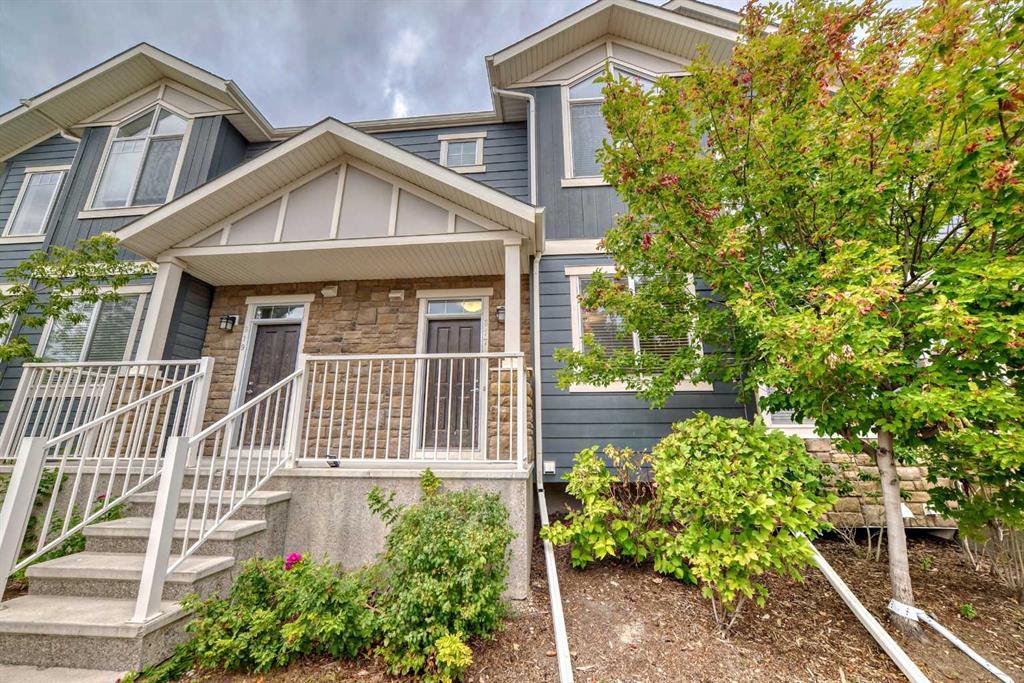 Welcome to this beautiful townhome in the sought-after Evanston community! Offering over 1,870 sqft of elegant living space, this home features 3 generous bedrooms, top-quality finishes, and a host of modern conveniences, including an double attached garage. The charming curb appeal and inviting front porch set the stage for what’s inside. Step into the open-concept main level, where natural light floods the space, highlighting the luxury wide-plank flooring and soothing neutral tones. The expansive living and dining areas are perfect for gatherings, offering ample room for entertaining. At the back of the main level, the stylish kitchen is a chef’s delight, featuring rich dark cabinetry with crown moldings and silver hardware, a multi-gray tile backsplash, and granite countertops with a breakfast bar island. High-end appliances include a fridge with a bottom freezer, OTR microwave, built-in dishwasher, and electric stove. The kitchen seamlessly flows to the rear patio/balcony, ideal for enjoying indoor/outdoor living. Completing the main level are additional storage options and a convenient 2-piece guest bathroom. Upstairs, you’ll find three spacious bedrooms with plush carpet flooring, including a master suite with vaulted ceilings and a 3-piece ensuite bathroom. There’s also a shared 4-piece bathroom with a tub/shower combo. The basement houses a stacked washer/dryer and a large family room, adding extra space for relaxation or activities. Located in a vibrant neighbourhood with excellent schools and shopping amenities (just 2 minutes to the plaza with No Frills, gas stations, and restaurants), and only a short 25-minute drive to downtown Calgary, this home offers both comfort and convenience. Schedule your visit today—this opportunity won’t last long!